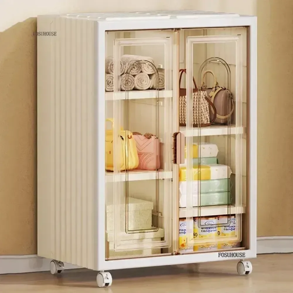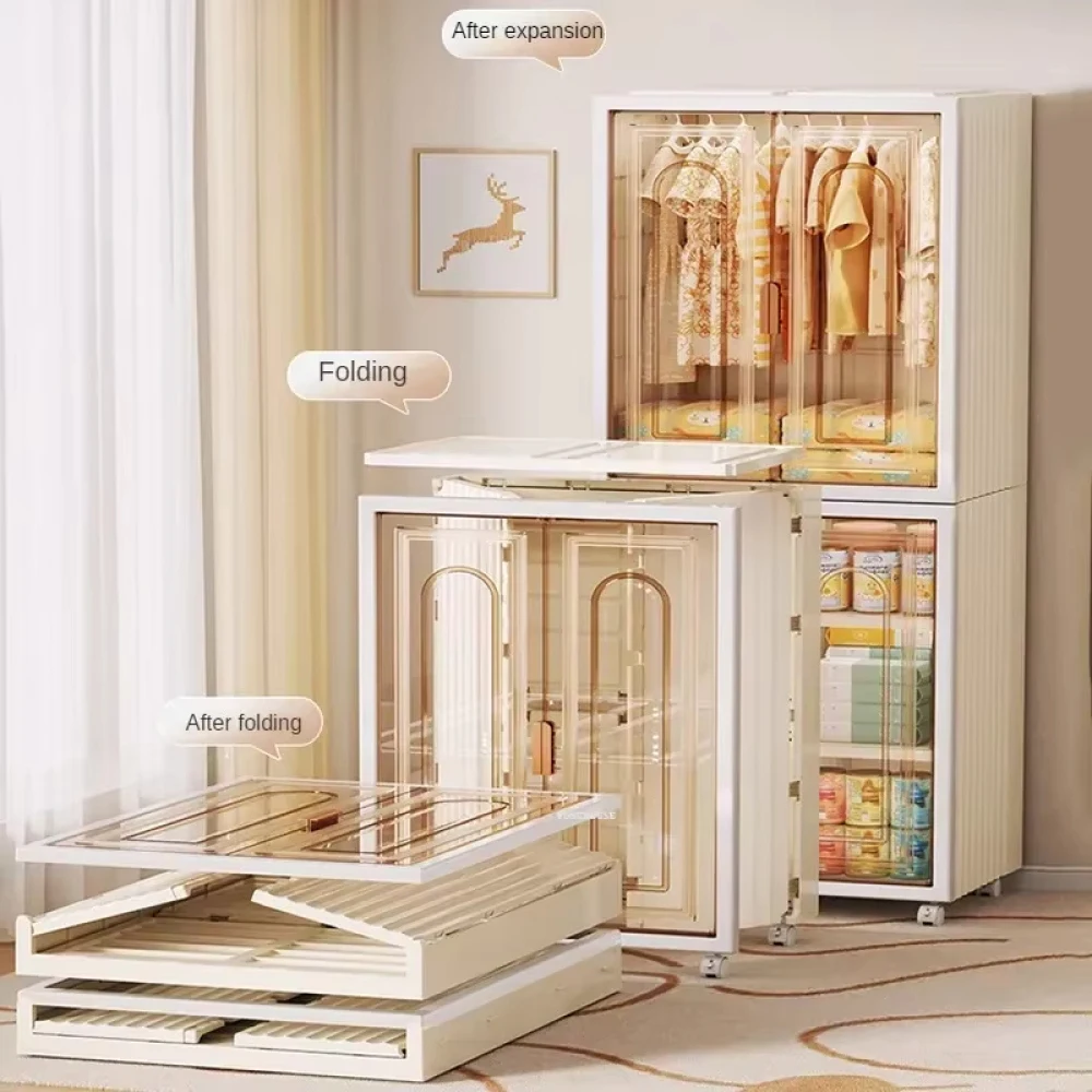 Simple Folding Storage Cabinets Portable Living Room Cabinet Wheel-type Large Capacity Storage Cabinet Stack-able Wardrobe