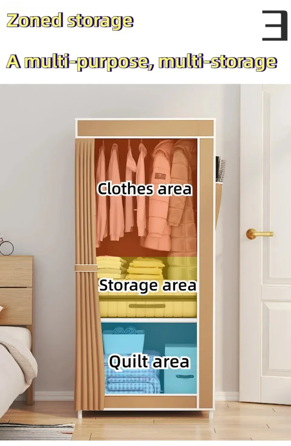 -3. Partition storage:Clothing hanging area, storage area, cotton quilt area