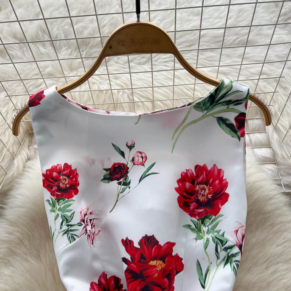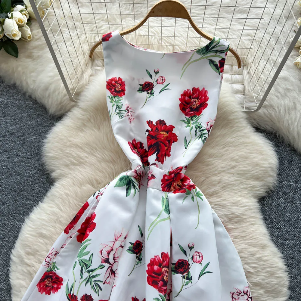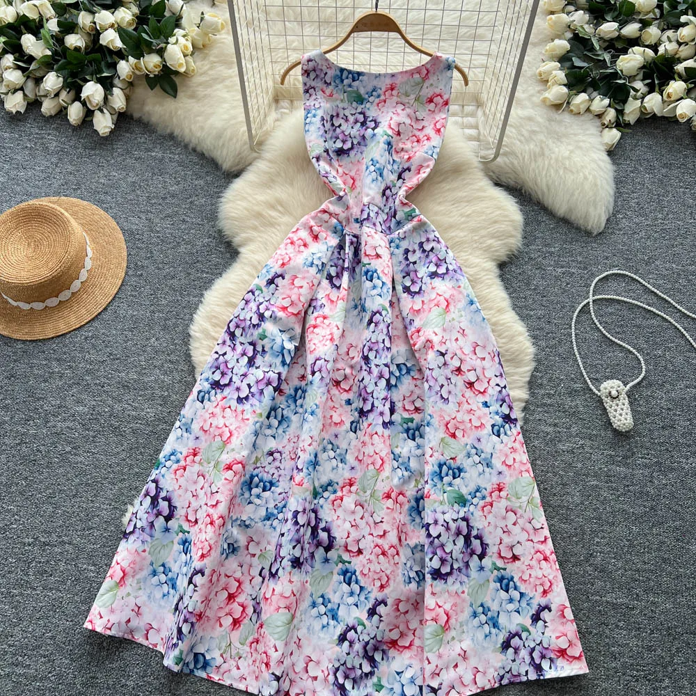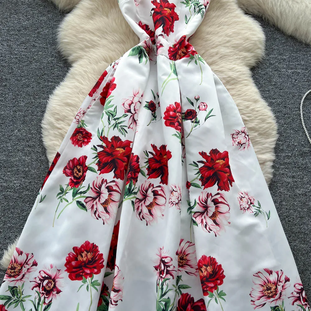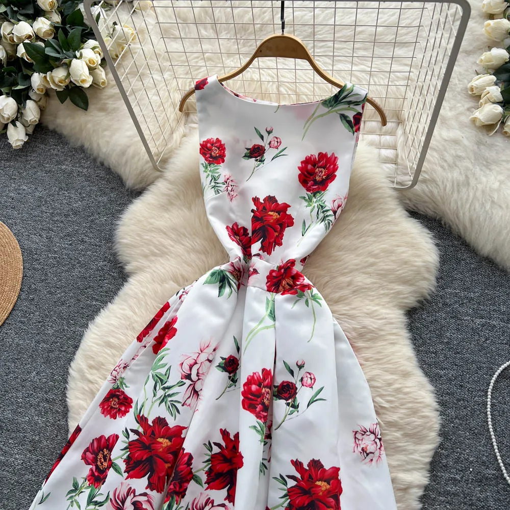 SINGREINY High Quality Bohemian Print Dress Female 2025 O Neck Sleeveless A Line Sundress French Styles Floral Party Long Dress