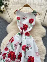 Be the first to review “SINGREINY High Quality Bohemian Print Dress Female 2025 O Neck Sleeveless A Line Sundress French Styles Floral Party Long Dress”