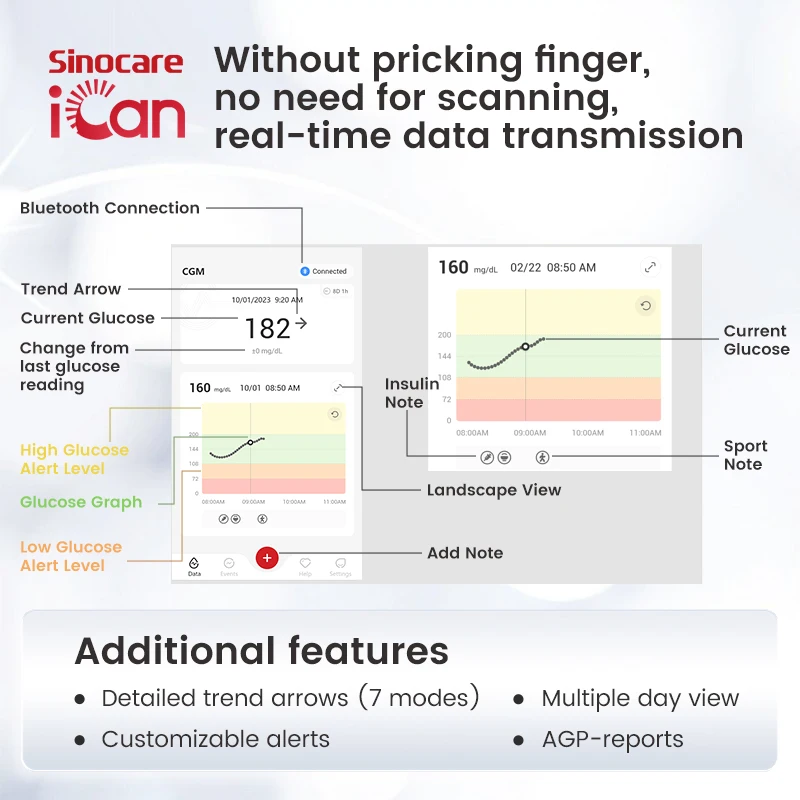 Real-Time Alerts: The iCan i3 CGM provides real-time alerts, notifying users of any significant changes in their blood sugar levels, including high and low blood sugar alerts.