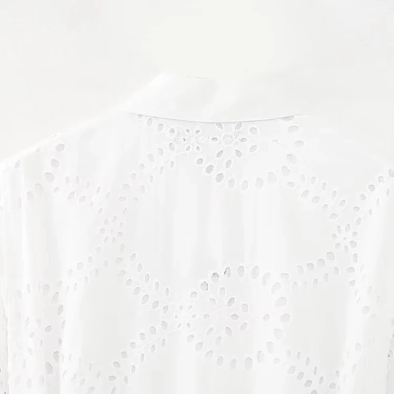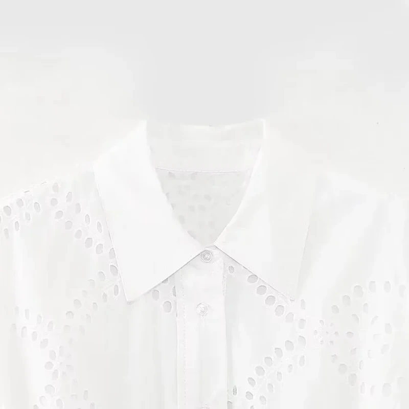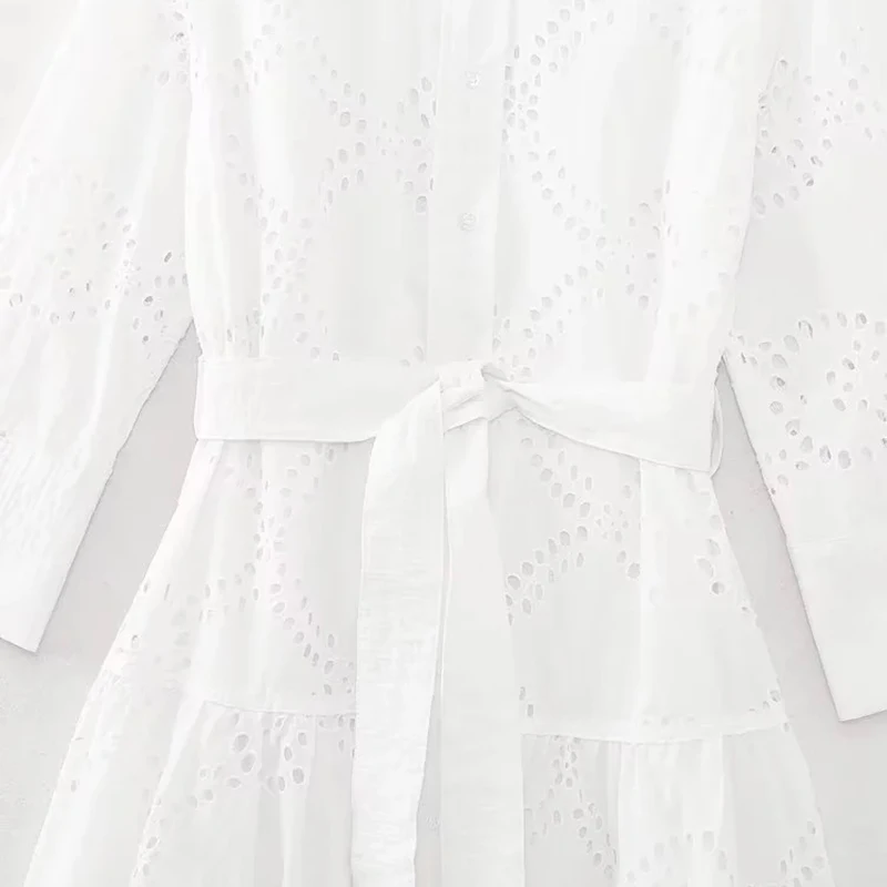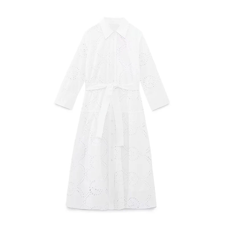 SIYANG 2024 New White Embroidery Midi Dress Long Sleeve Shirt Dress Regular Fit Fashion Women’s Dress Mujer Chic Vestidos