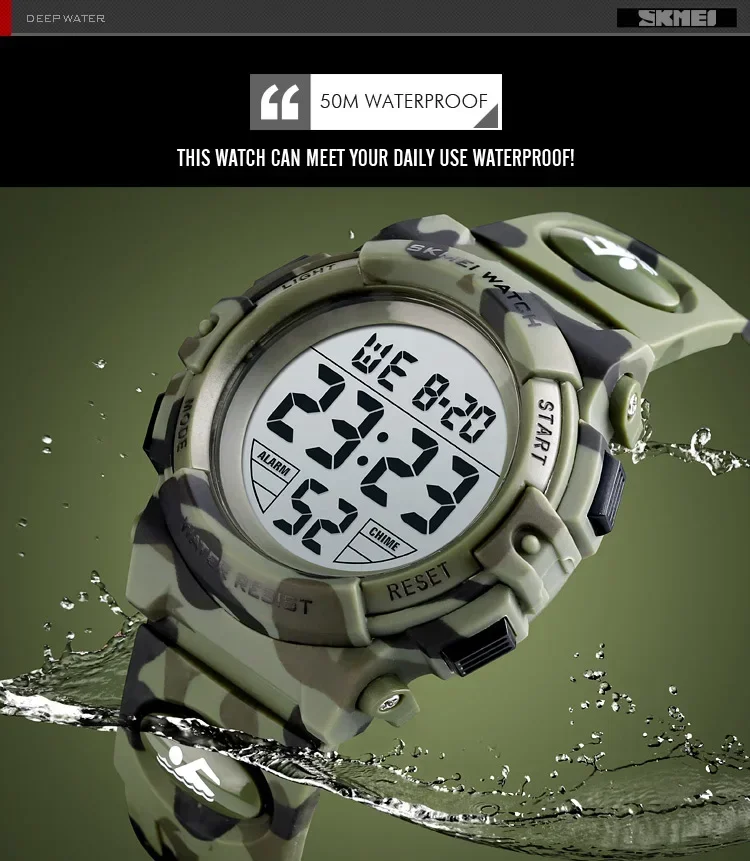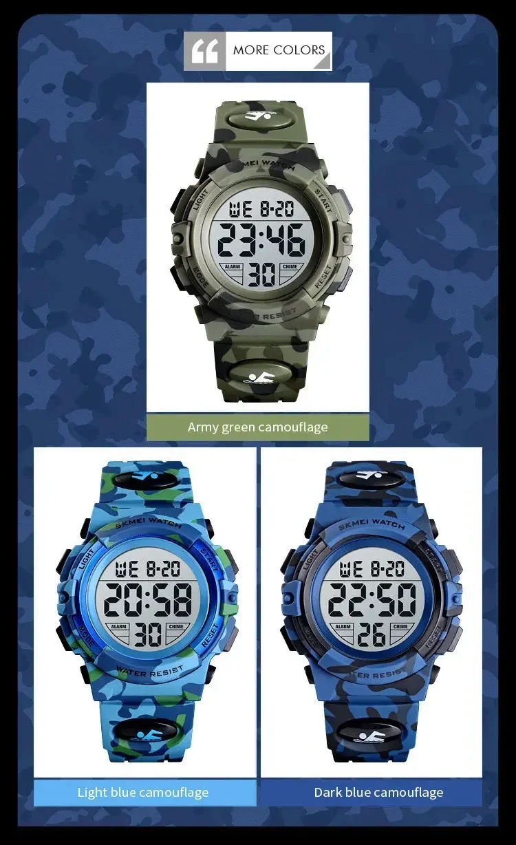 Be the first to review “SKMEI 1548 Sport Children’s Watch 5bar Waterproof Colorful Lights 12/24Hour Camouflage relogio infantil Boy Kids Watches” Cancel reply