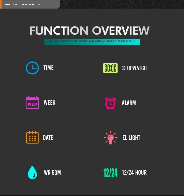- Feature: Repeater,Luminous,Water Resistant,Week Display