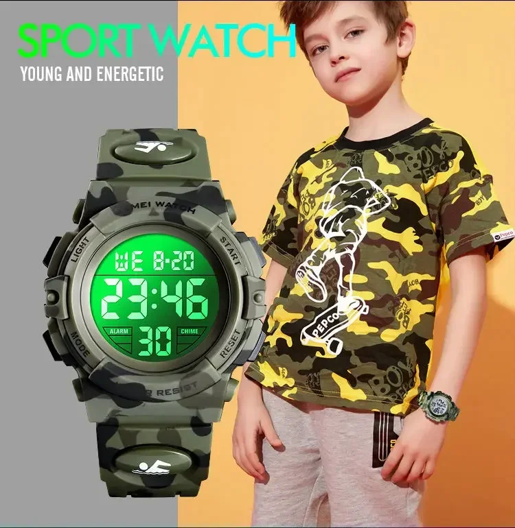 SKMEI 1548 Sport Children’s Watch 5bar Waterproof Colorful Lights 12/24Hour Camouflage relogio infantil Boy Kids Watches