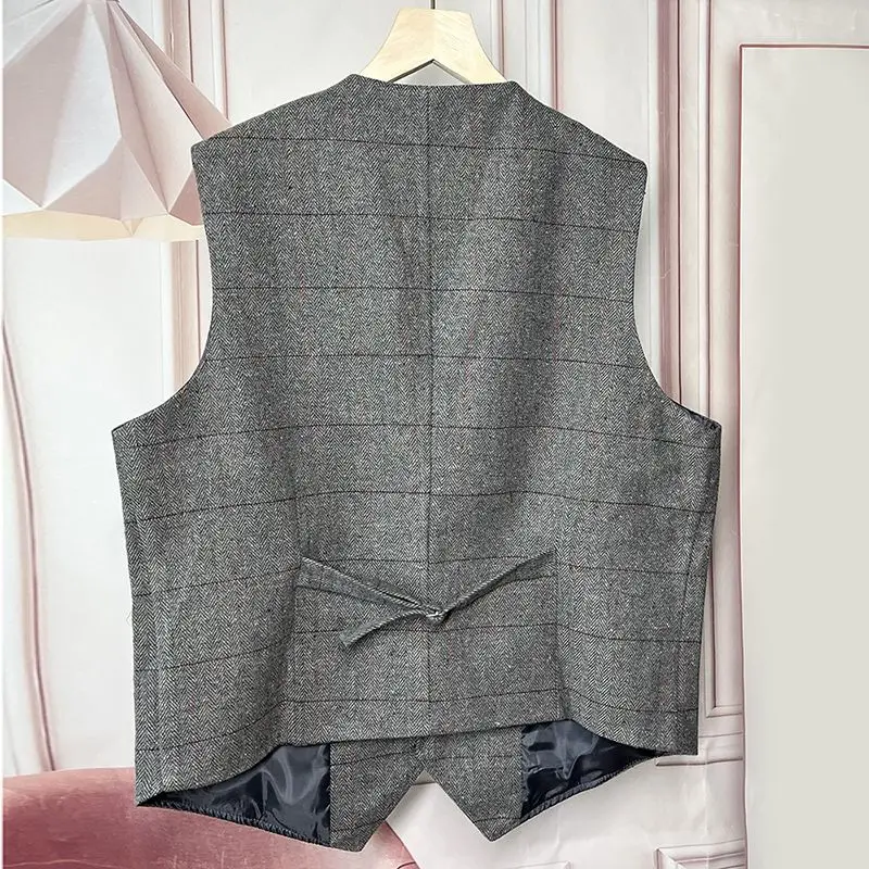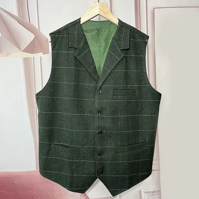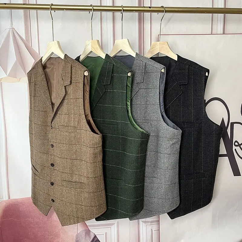 Smart Casua Autumn New Men Coat Vests Collarless Plaid Slim Lapel Single Breasted Trend Fashion All-match Sleeveless Waistcoat