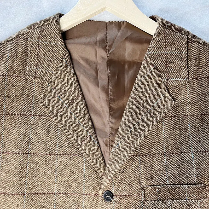 Be the first to review “Smart Casua Autumn New Men Coat Vests Collarless Plaid Slim Lapel Single Breasted Trend Fashion All-match Sleeveless Waistcoat”