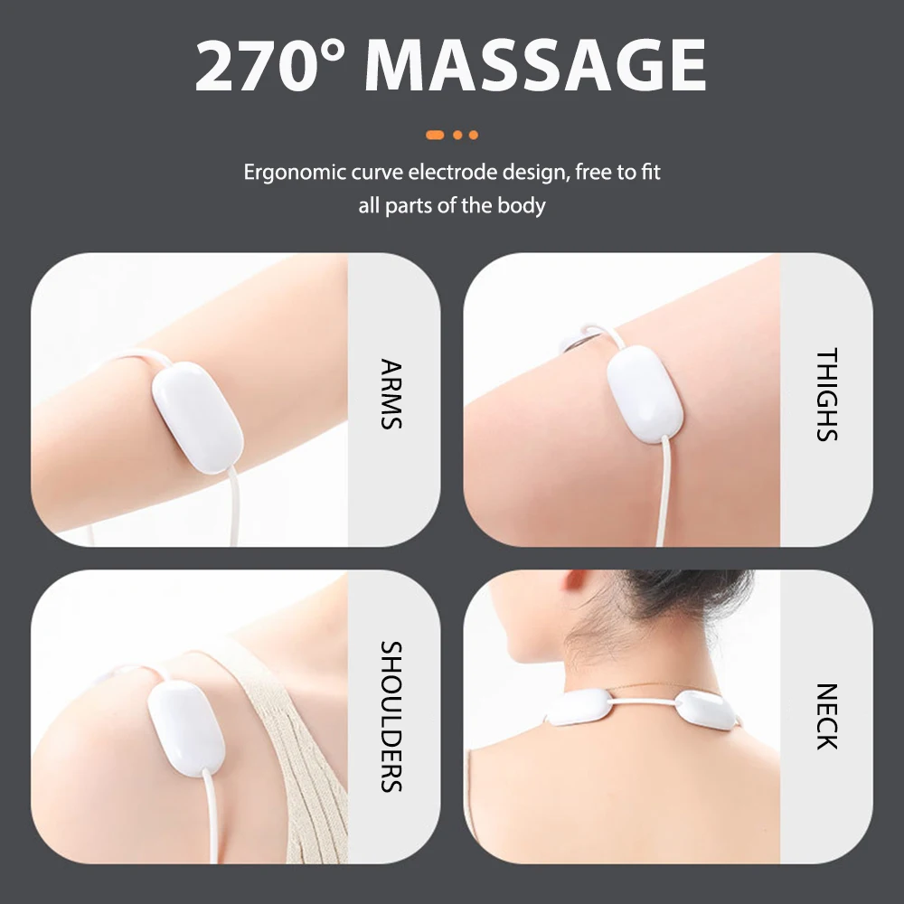 5. [270 °Fitting Massage ]: This cordless neck massager adopts an ergonomic curve electrode design to fit all body parts at 270°, such as legs, arms, shoulders, and neck.