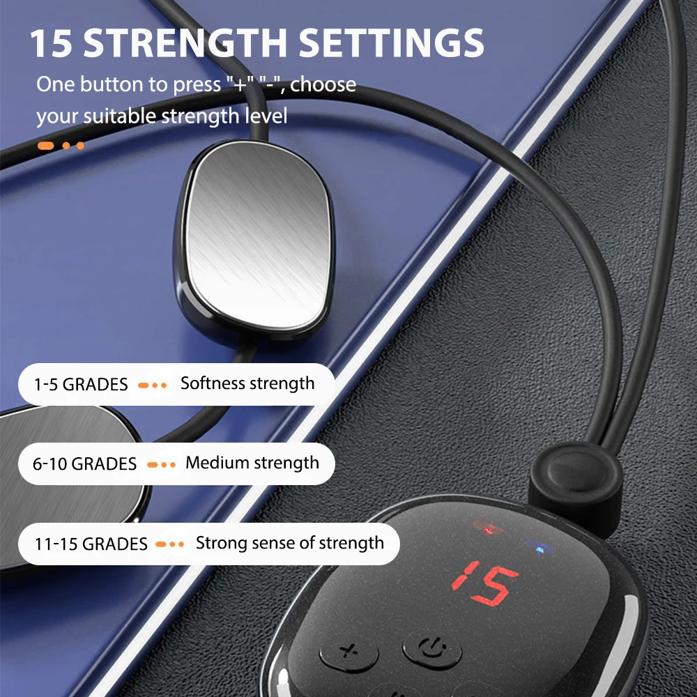 1. [Low-Frequency EMS & TENS Pulse Technology]: This smart neck massager uses double electric pulse tech, deeply massage the muscles, relax the cervical spine, relieve neck fatigue, and effectively improve various neck problems such as shoulder and neck strain, pain, soreness, stiffness, and discomfort.