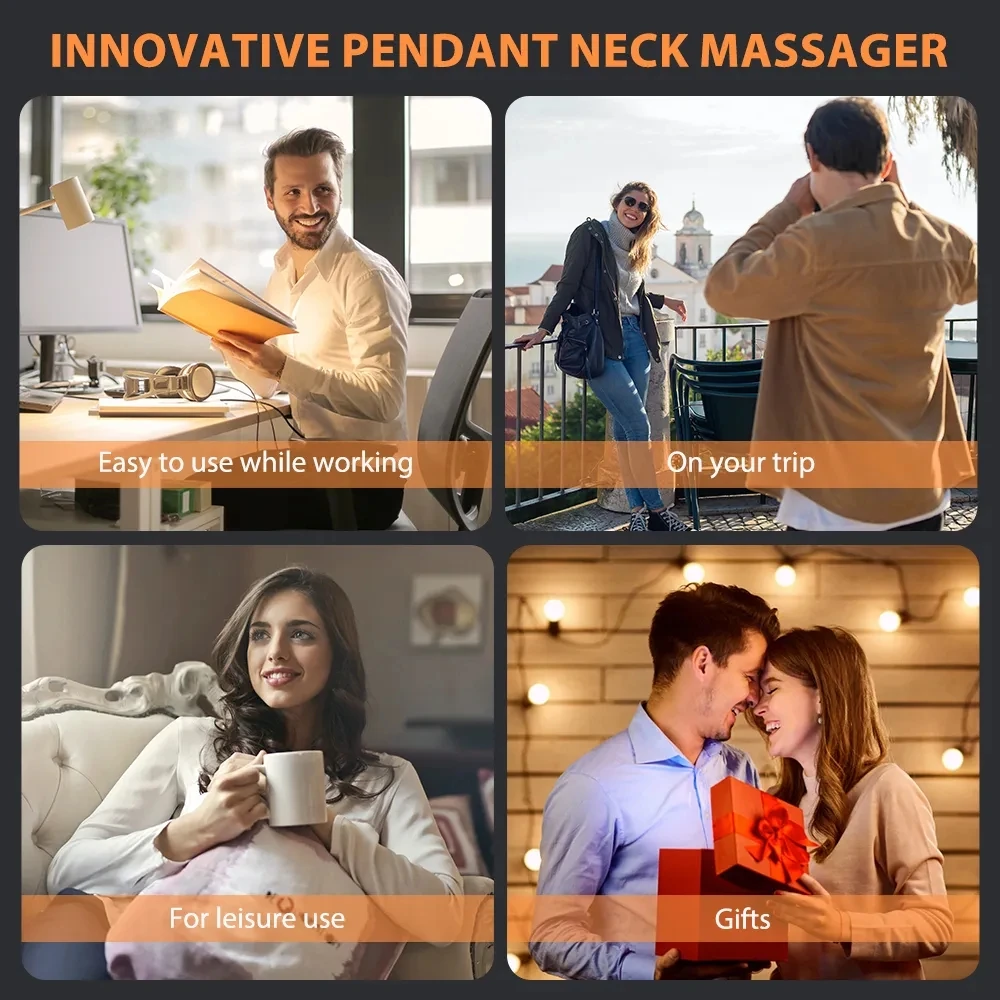 Smart Hanging Neck Massager Heating TENS Pulse Necklace Microcurrent Cervical Shoulder Spine Kneading Low Frequency Relaxation