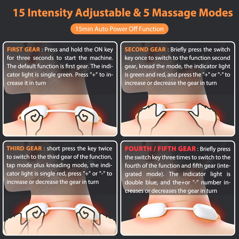 3.[5 Massage Modes&15 Levels Intensity]: This pendant neck massager has an Integrated mode, tapping mode, kneading mode, vitality mode, and press mode. Plus 15 Levels of intensity, you can freely adjust according to your personal tolerance and preferences.
