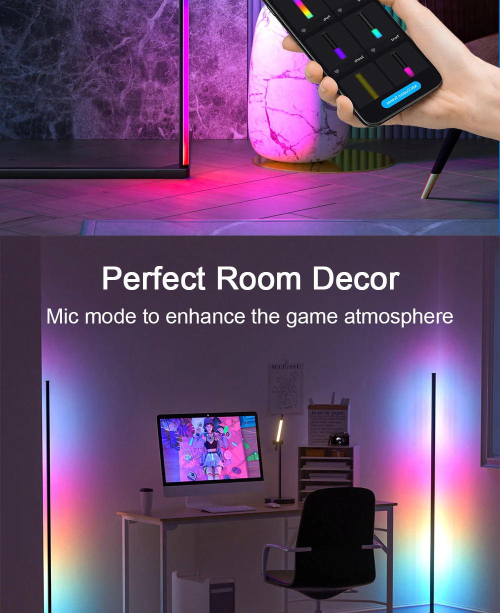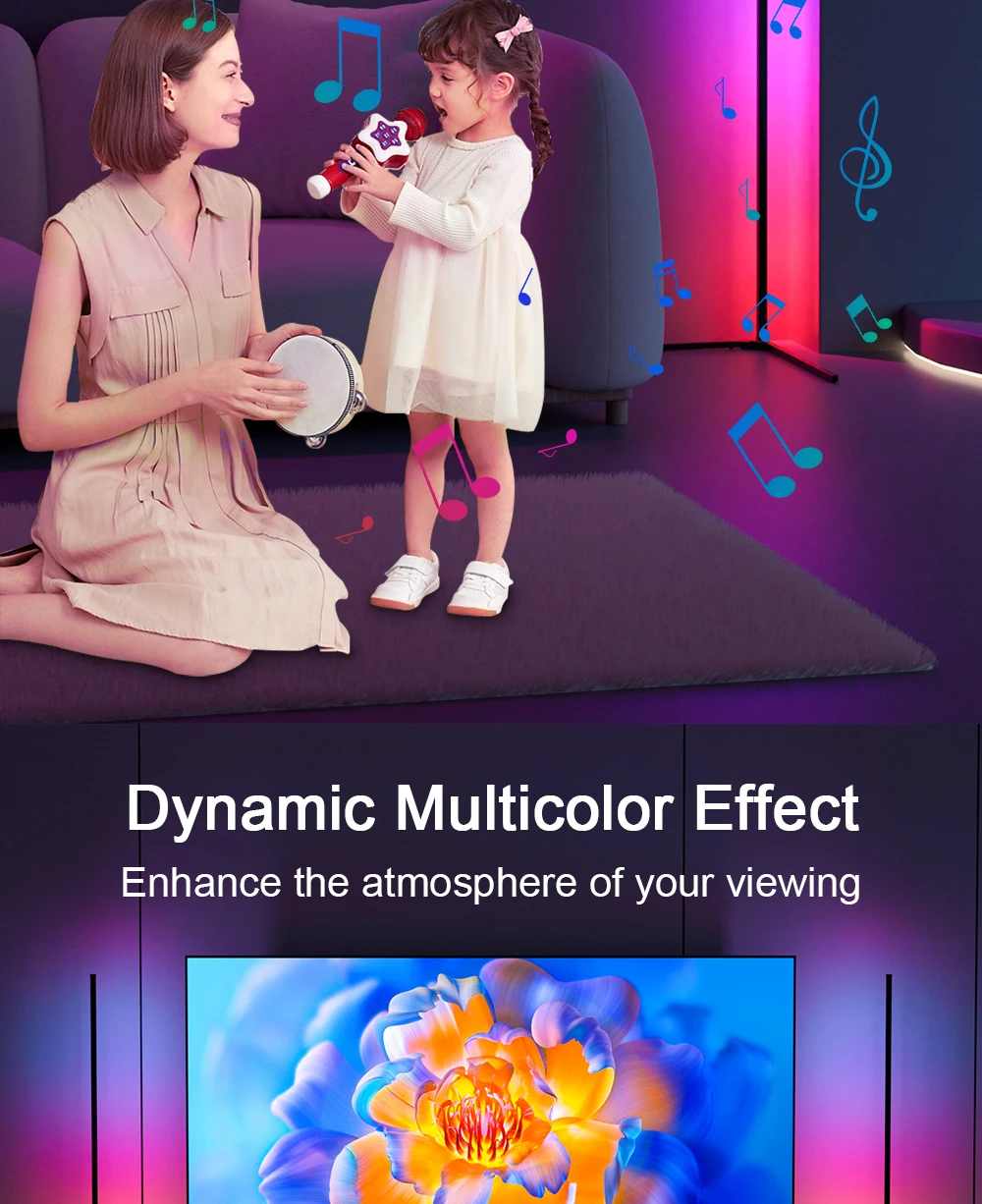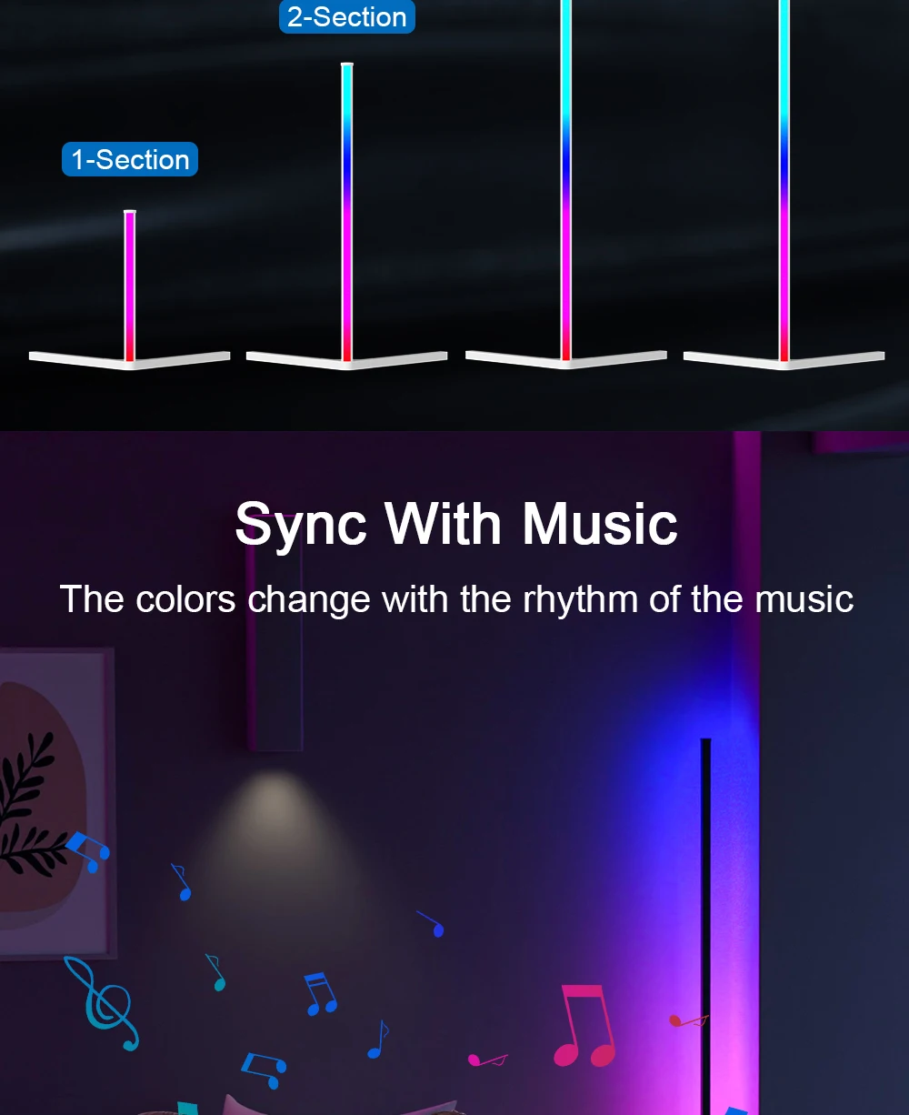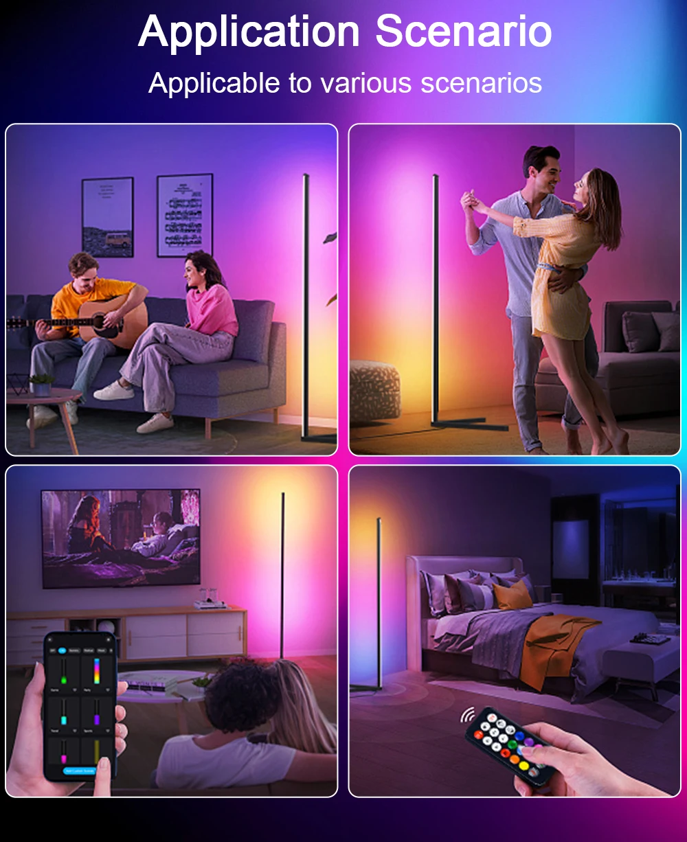52-key remote control + WIFI: remote control floor lamp + smart home APP (Tuya/Google/Alexa) control floor lamp