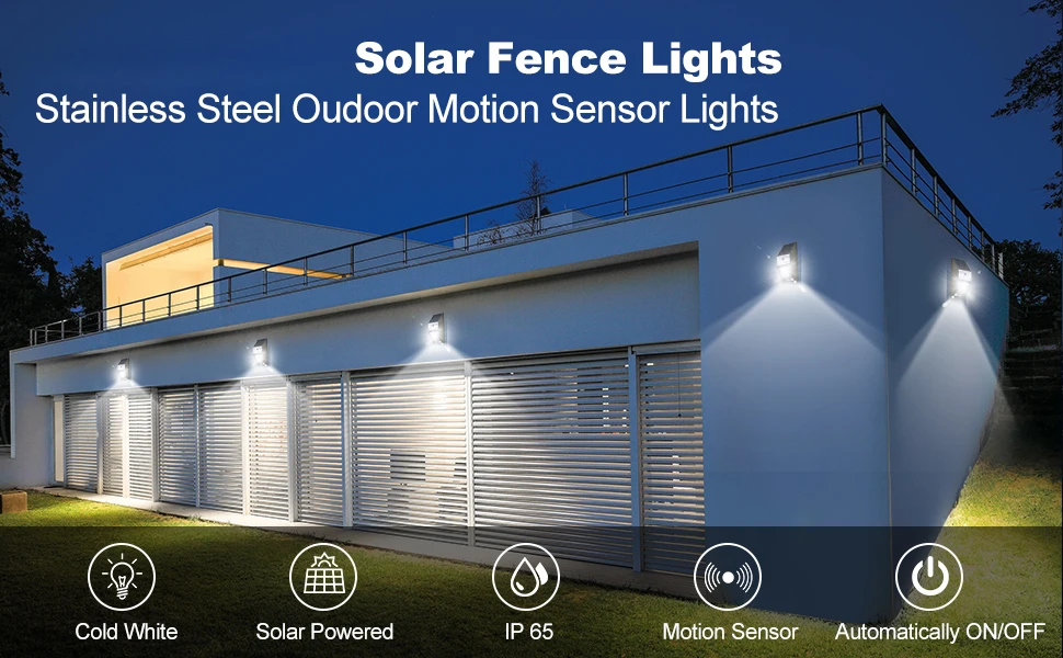 Fast Charging & Long-lasting Lighting: Equipped with a high-conversion efficiency solar panel, the Motion Sensor Solar Fence Lights provide up to 10-12 hours of nighttime illumination after only 4-5 hours of charging during the day, making it easy to enjoy long-lasting, bright illumination in the darkest of nights.