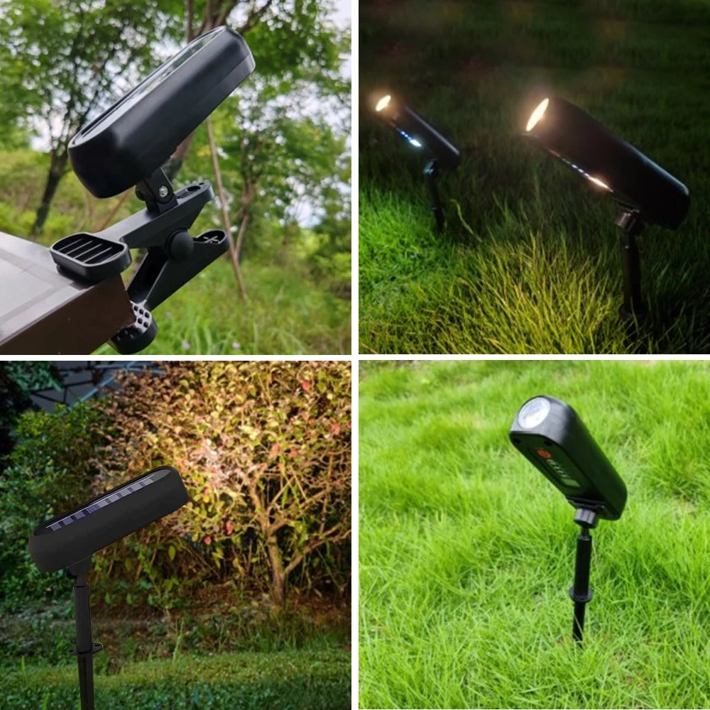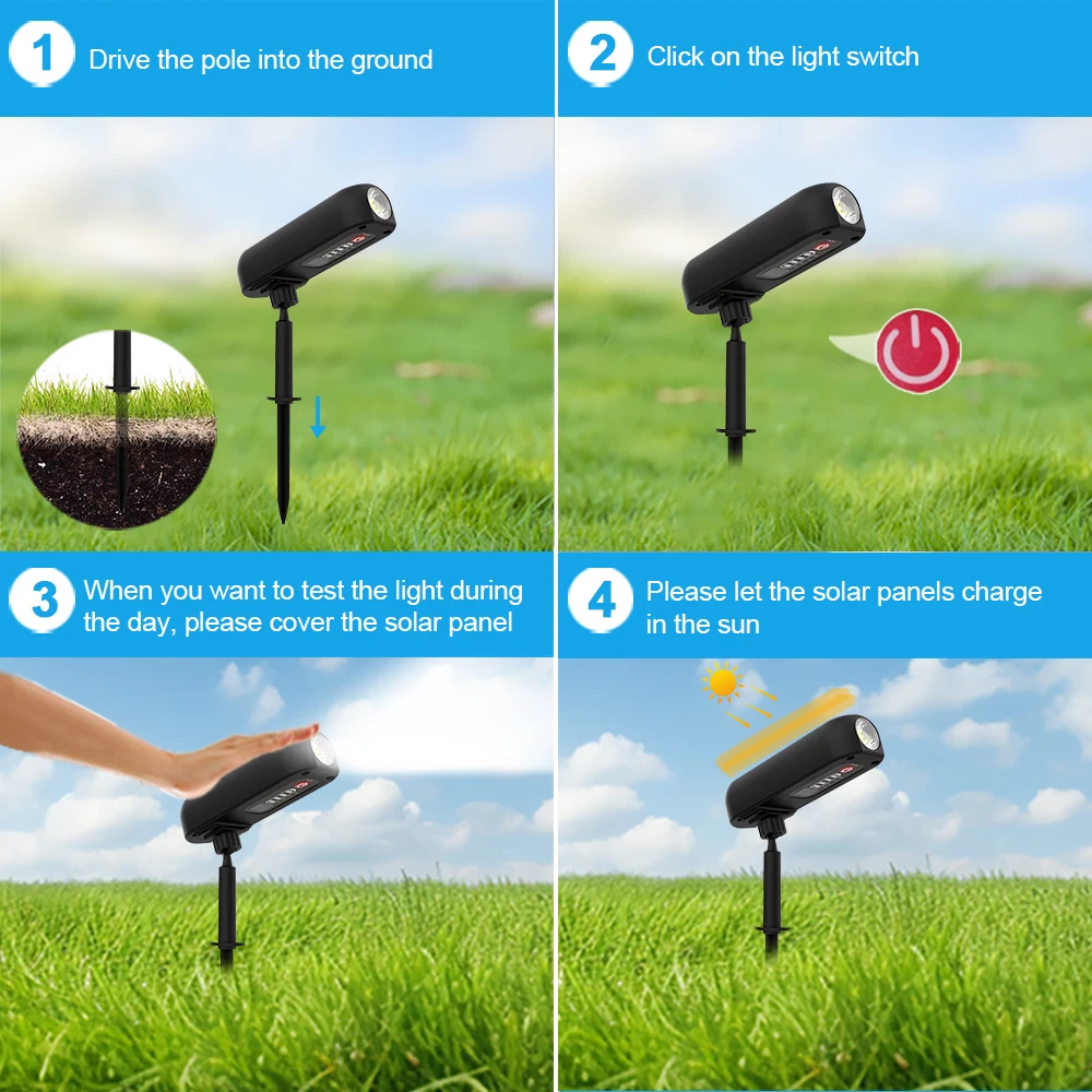 【Unique Solar Spotlight】Powered by high quality 5V solar panel, solar powered design, and our solar spotlights have 2 illuminants(Main Light & Backlight) to create a larger area which make a more attractive setting for your garden.