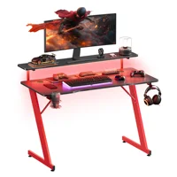 Transform your gaming setup with the gaming desk from SONGMICS HOME! This sleek, modern computer desk combines a carbon black top with vibrant ruby red legs, adding a touch of gaming flair to your space.