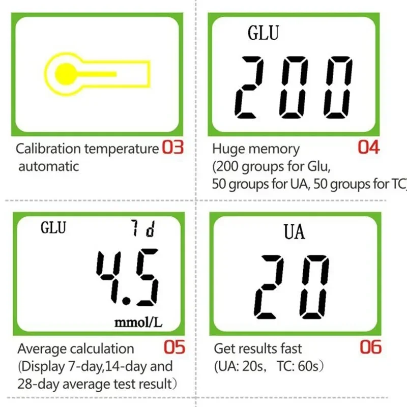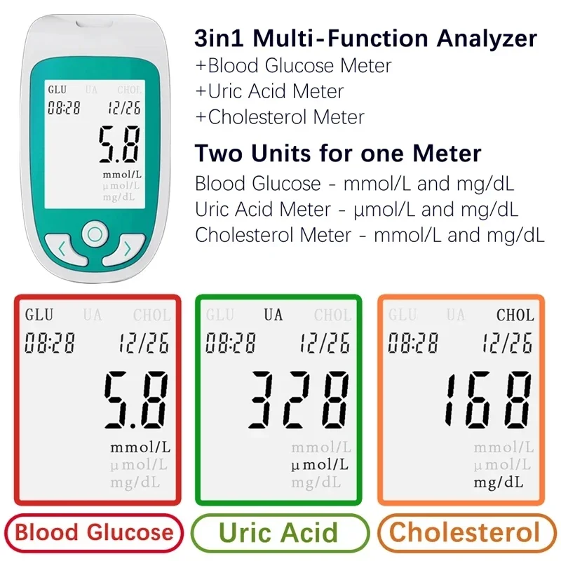 SpeedGuc Multifunction Analyzer 3 in 1 Blood Glucose Meter Cholesterol Uric Acid Meter Diabetes Health Accessories