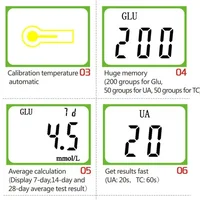 9. Memory capacity: 200 of the most recent blood glucose test results, 50 uric acid test results, 50 cholesterol test results
