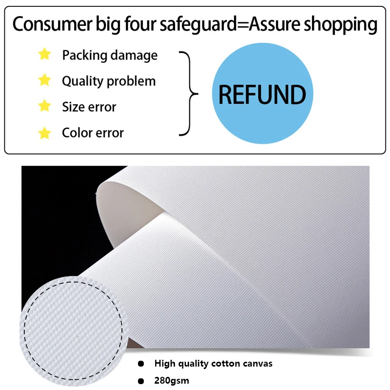 …Gallery quality fine art print on bright white, fine poly-cotton blend.We are committed to using the original Epson water-based ink, the cost is higher, but the color is better.Moreally, healthy and environmentally friendly,no smell.