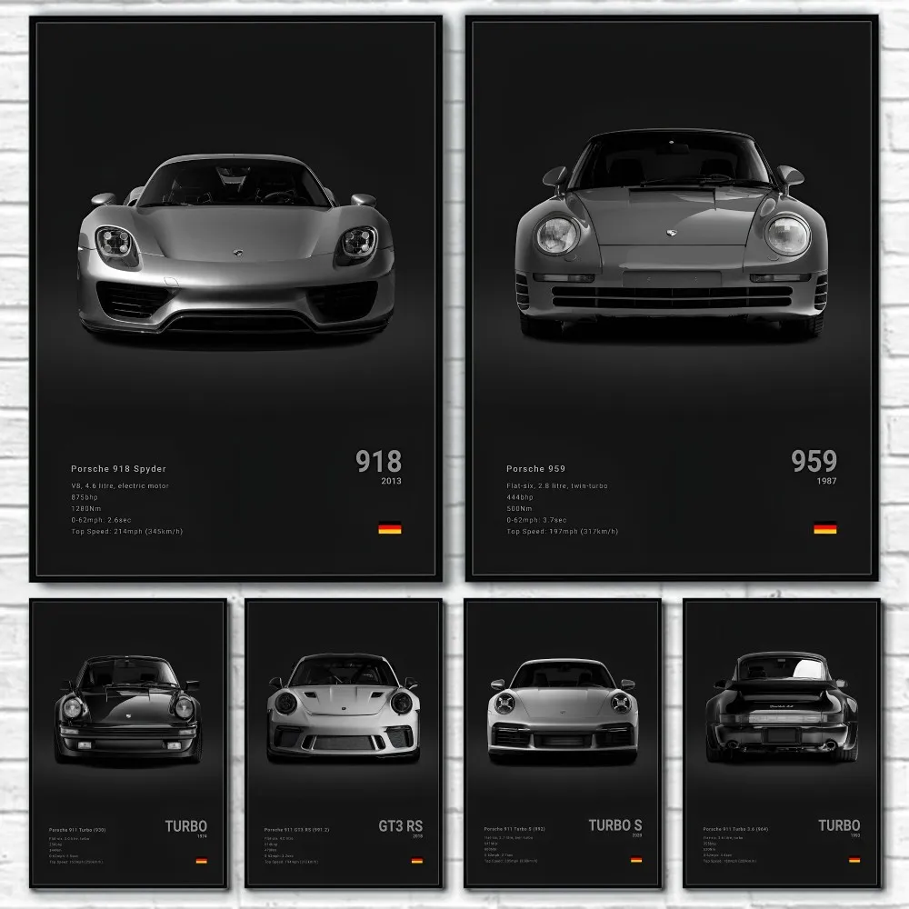 Sports Black Car Famous Cool Fashionable Simple 918 GT3-RS-911 TURBO S GT4 Poster Home living room Wall Art Garage Room Decor