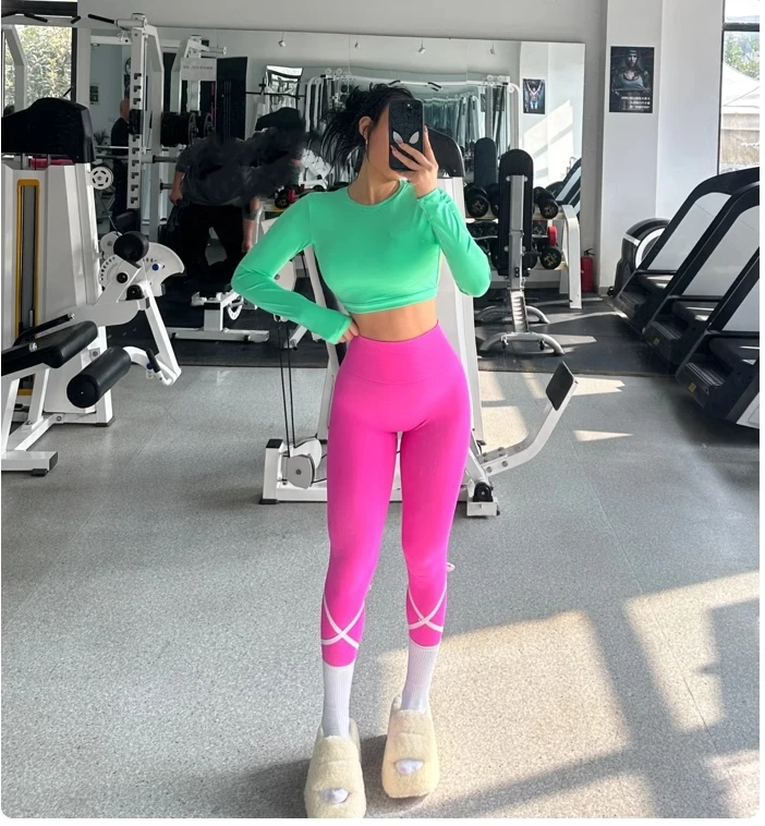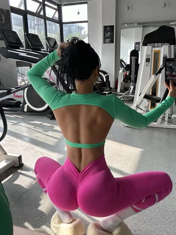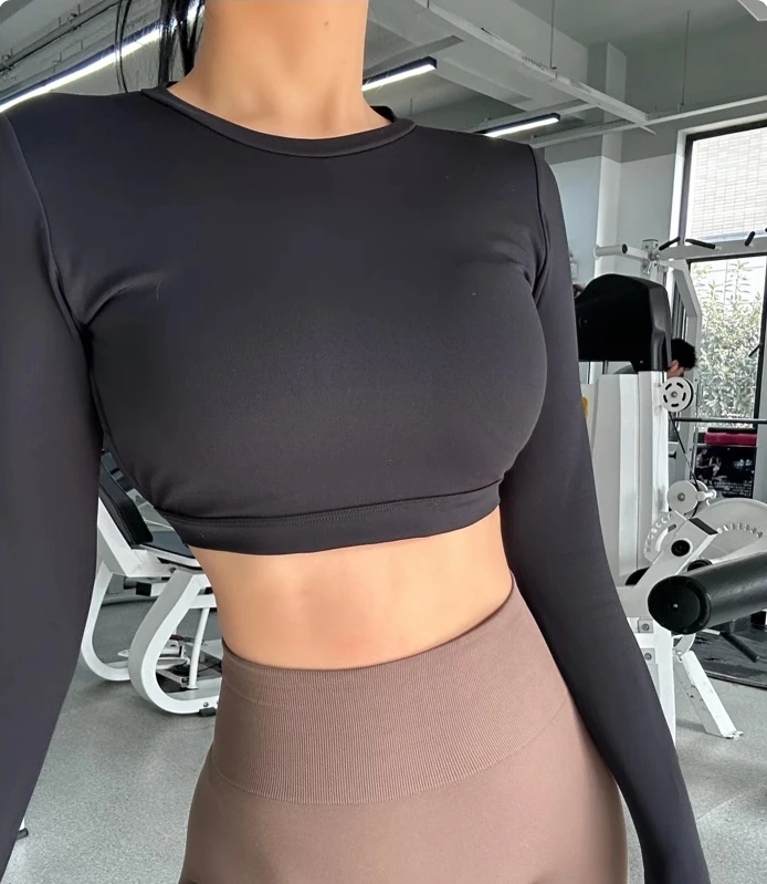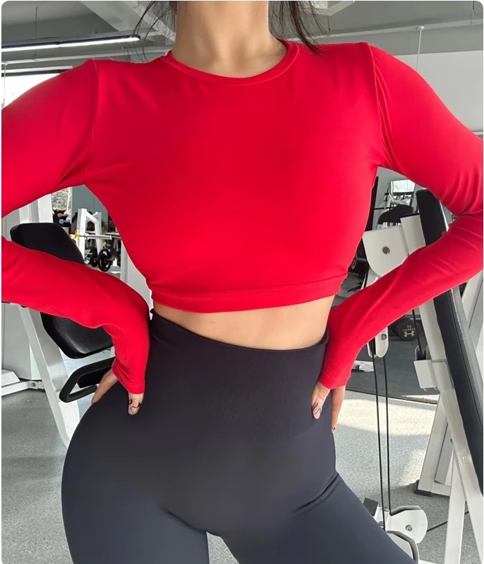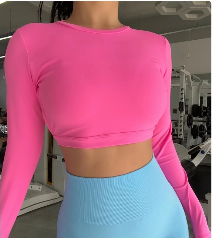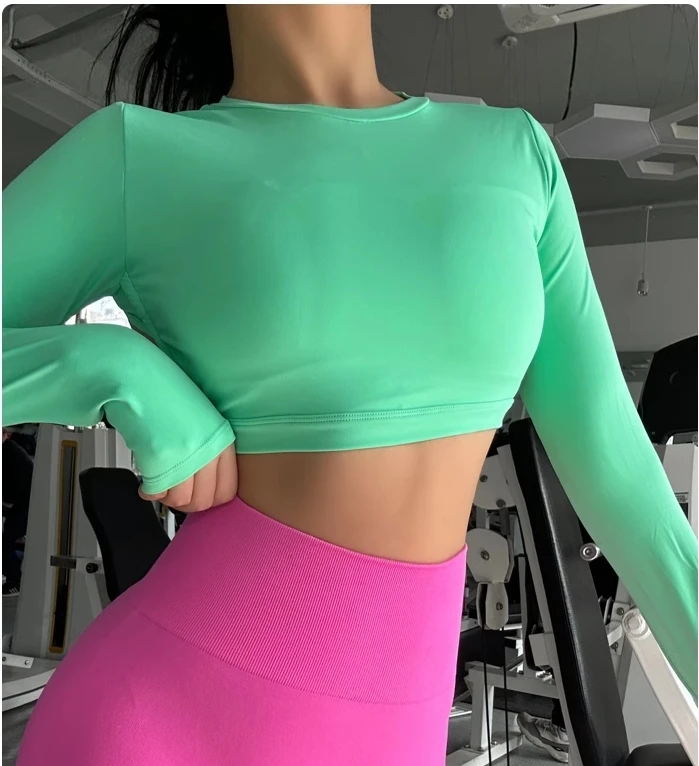 Sports Long Sleeve Shirt Sexy Gym Crop Top Women Yoga Clothing Workout Long Sleeved Top Female Sportswear