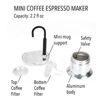 Single Tube Moka Pot 1 Cup 50ML Aluminum Alloy Spout Stovetop Italian Coffee Maker for Outdoor Parties Travel