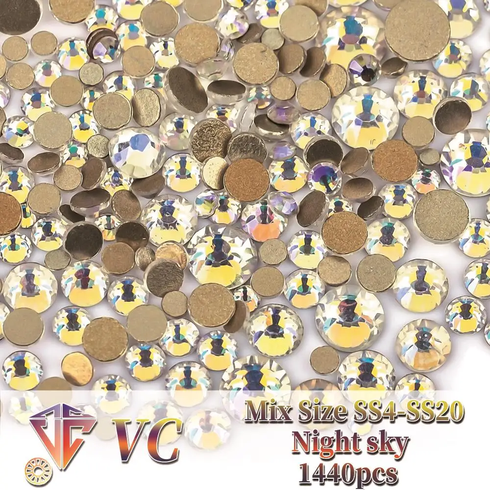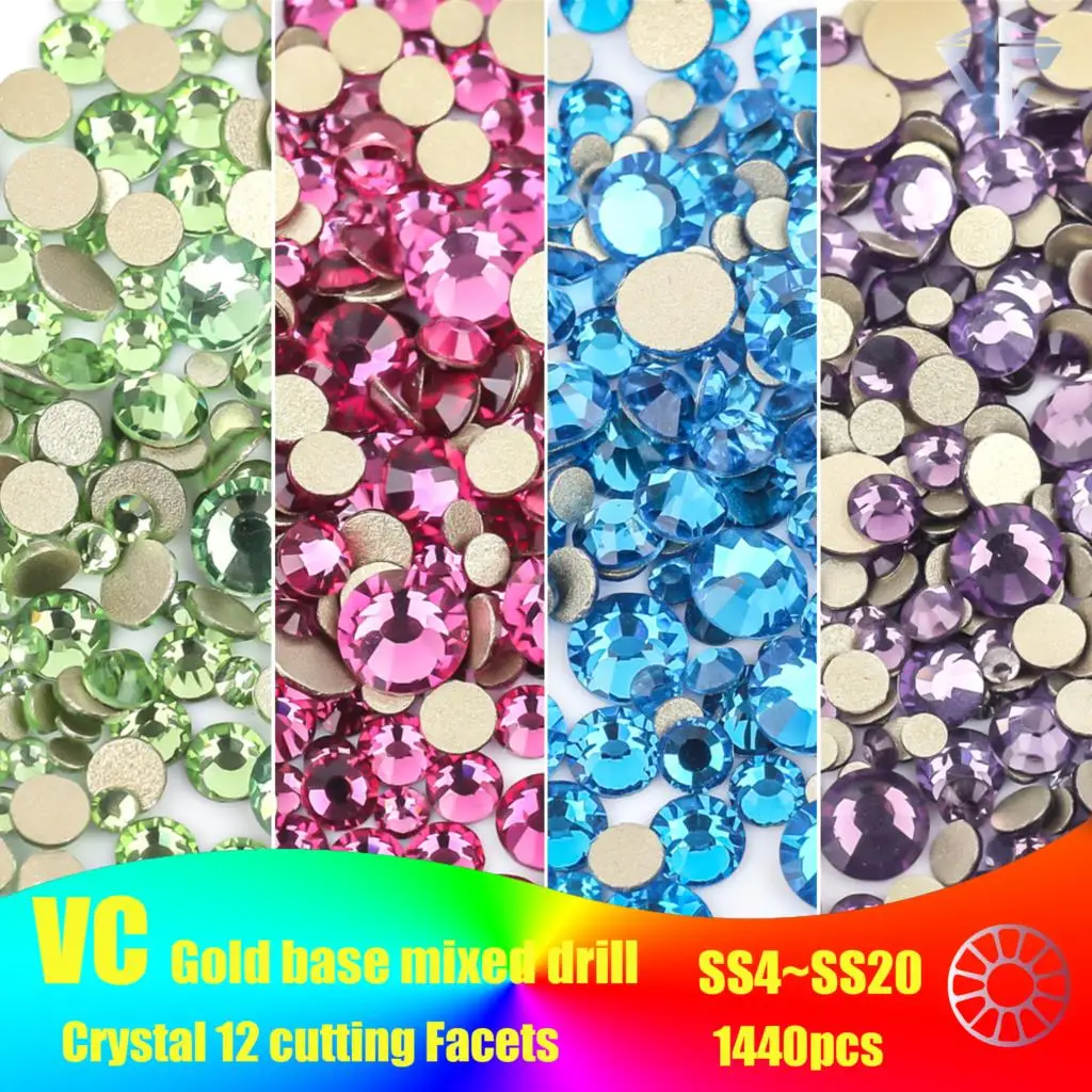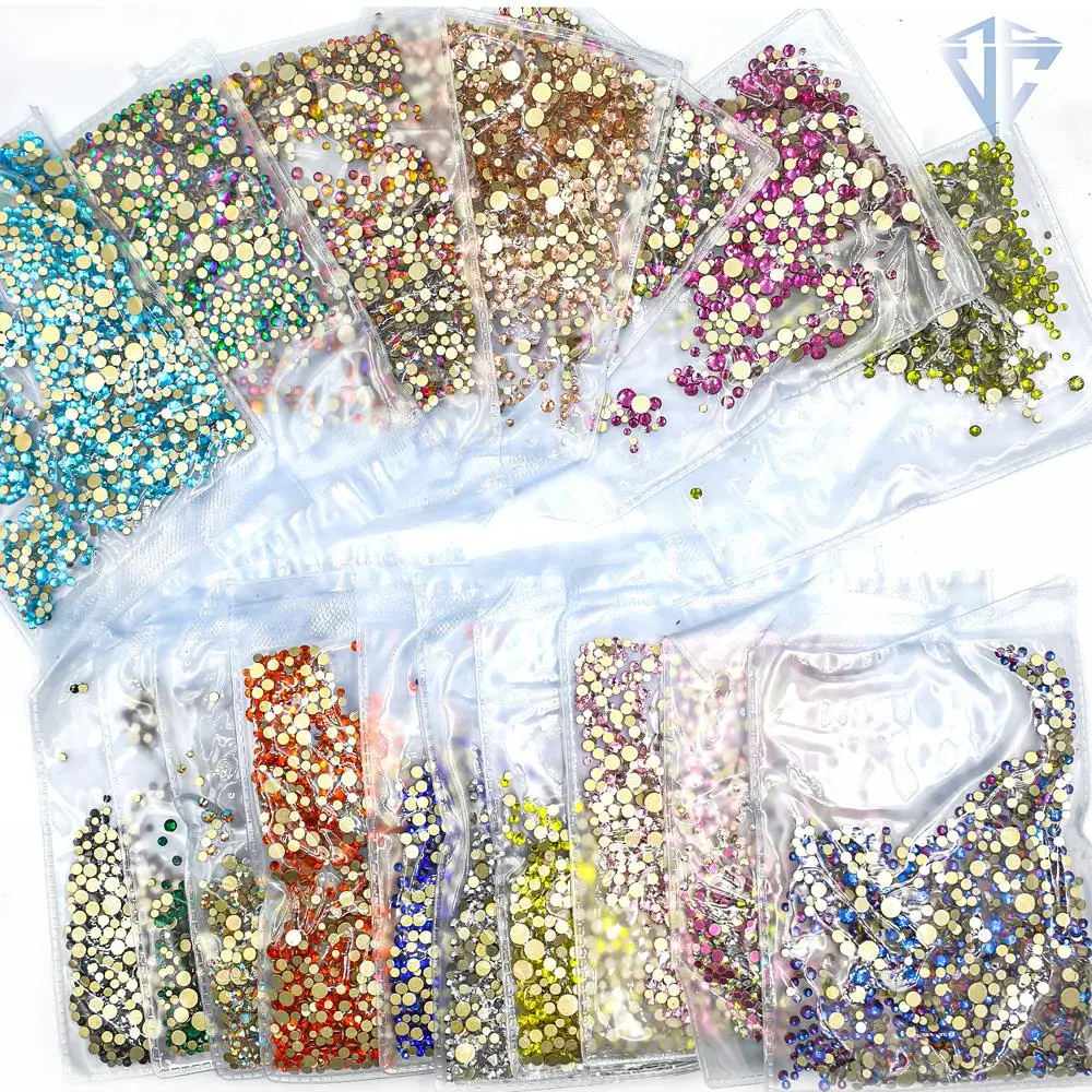 SS4-SS20 Mix Size Clear Crystal Non HotFix Gold FlatBack Rhinestones Decorations DIY Glitter Stones 3D Nail Art Accessories
