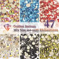 AAA Quality Golden bottom Crystal Non Hotfix Rhinestones Flat Back Nail Art Glue On Rhinestones