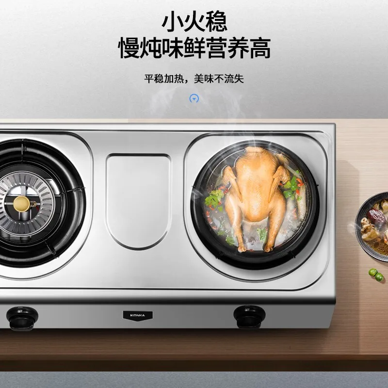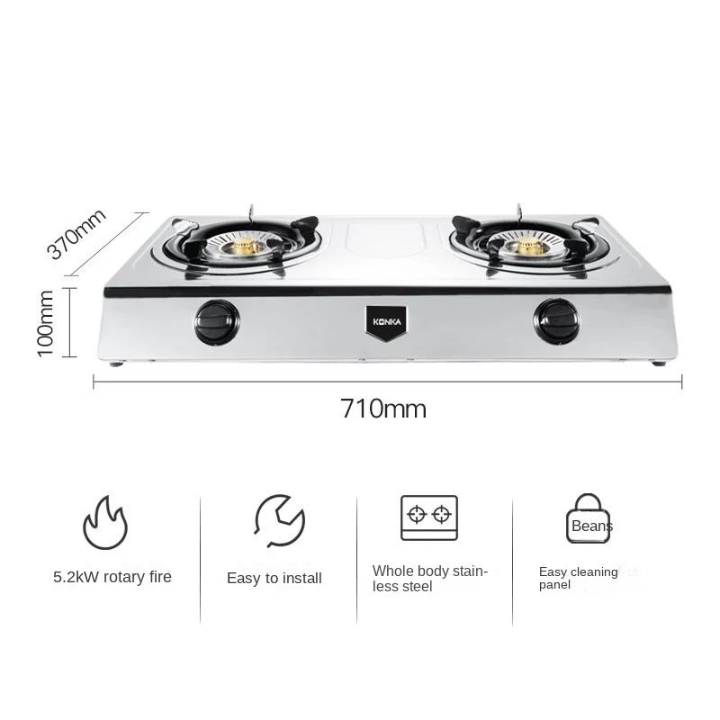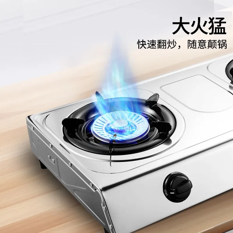 •   Gas stove, dual stove, large firepower desktop liquefied gas stove, dual stove, household high fire stove, stainless steel stove JZY-T502Y