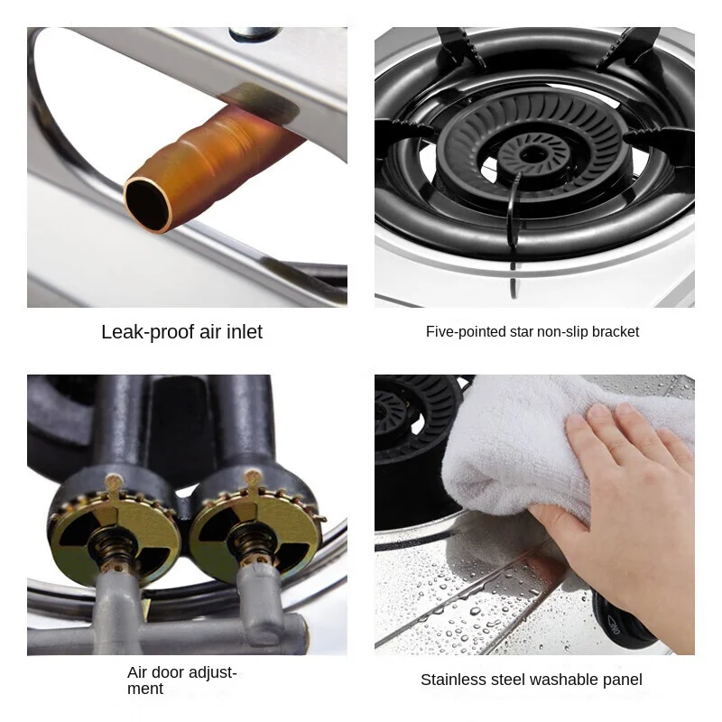 • Gas stove single stove desktop stainless steel panel gas stove single stove household fierce fire energy-saving single eye stove JZT-T1501 (G)
