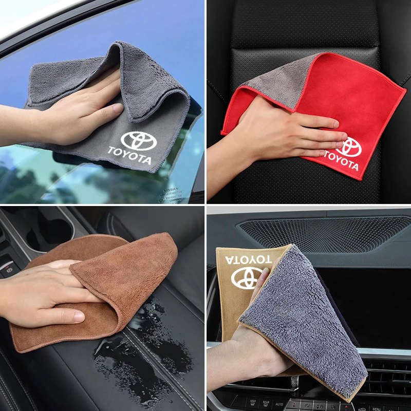 Suede Double-Faced Car Towels Cleaning Drying Cloth with Car brush For Toyota Corolla Camry Rav4 Yaris Hilux Prius Auris