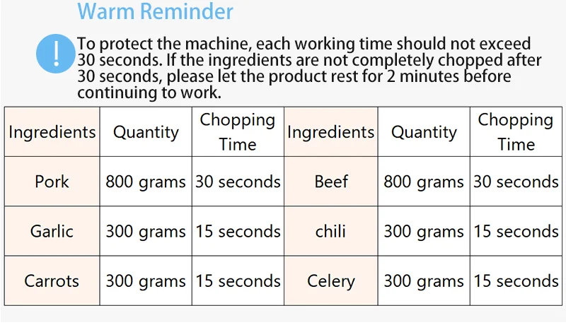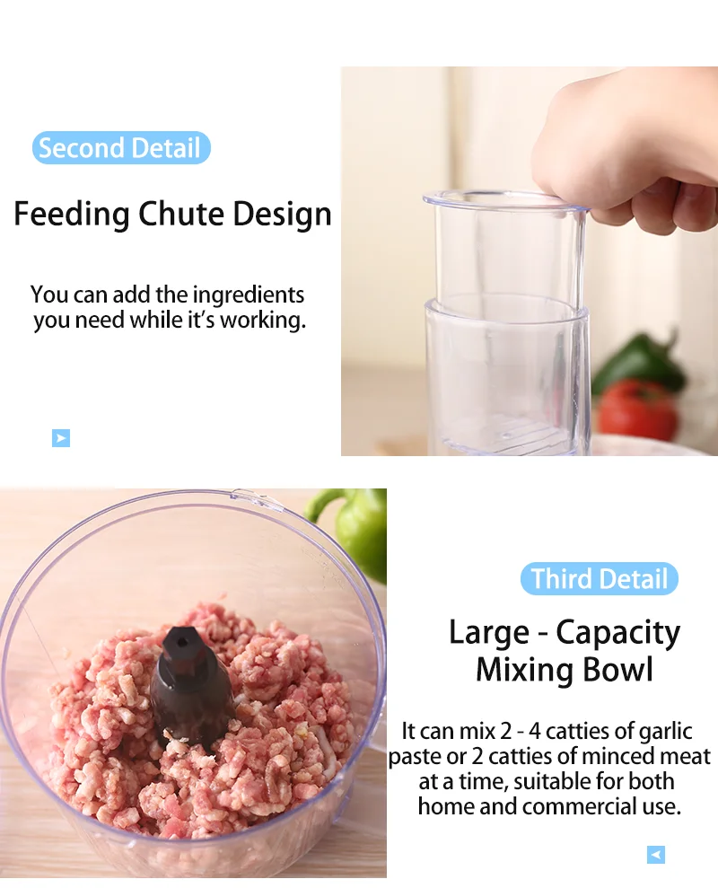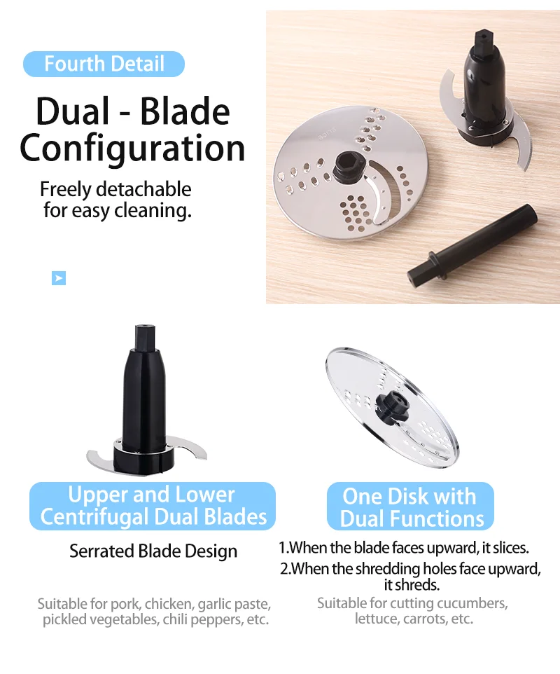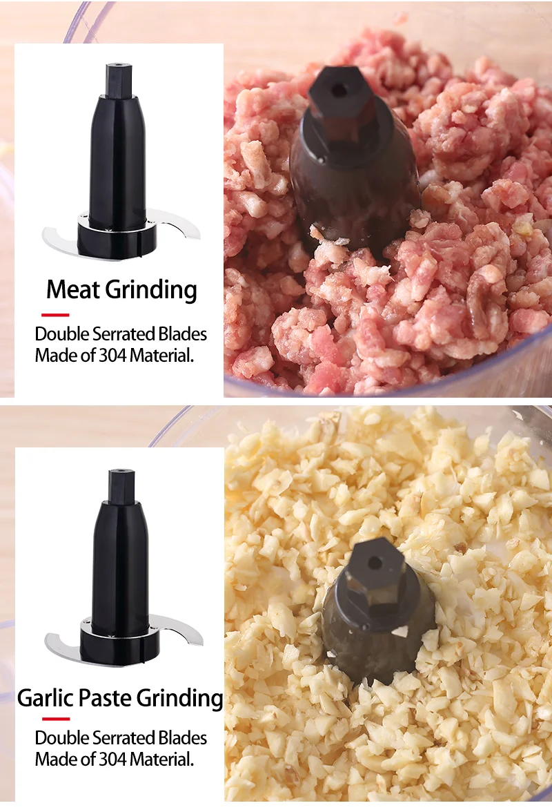 💪Dual – blade configuration, can easily mince pork, garlic paste, chili peppers, etc.