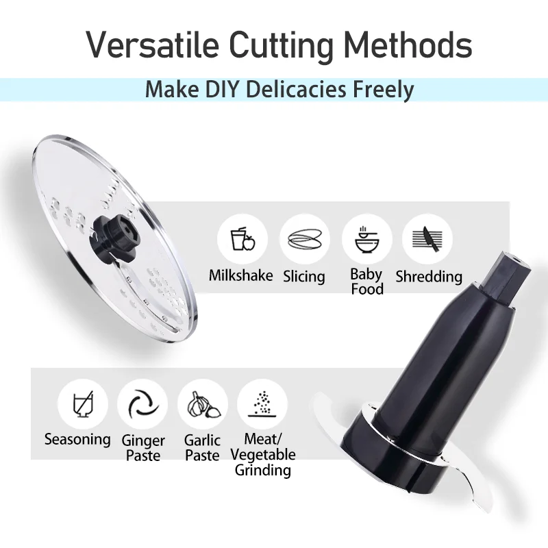 • Accessory Type: Slicing Disc,Shredding Disc,Locking Lid,Full-Size Feed Tube,Food Pusher
