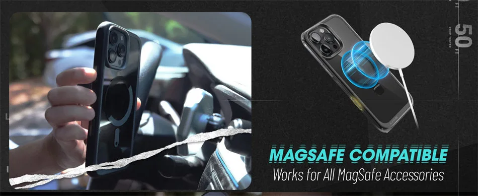[MagSafe Compatible]: The product has been tested by ZHIQU 100ON electric tensile testing machine. Its maximum vertical pulling force of the magnet is 1.81kgf (17.75N). Strong magnetic attraction ensures seamless compatiblity with MagSafe accessories (magnetic car mount, magnetic card holder, MagSafe wireless charger and desktop magnetic wireless charging stand,etc)