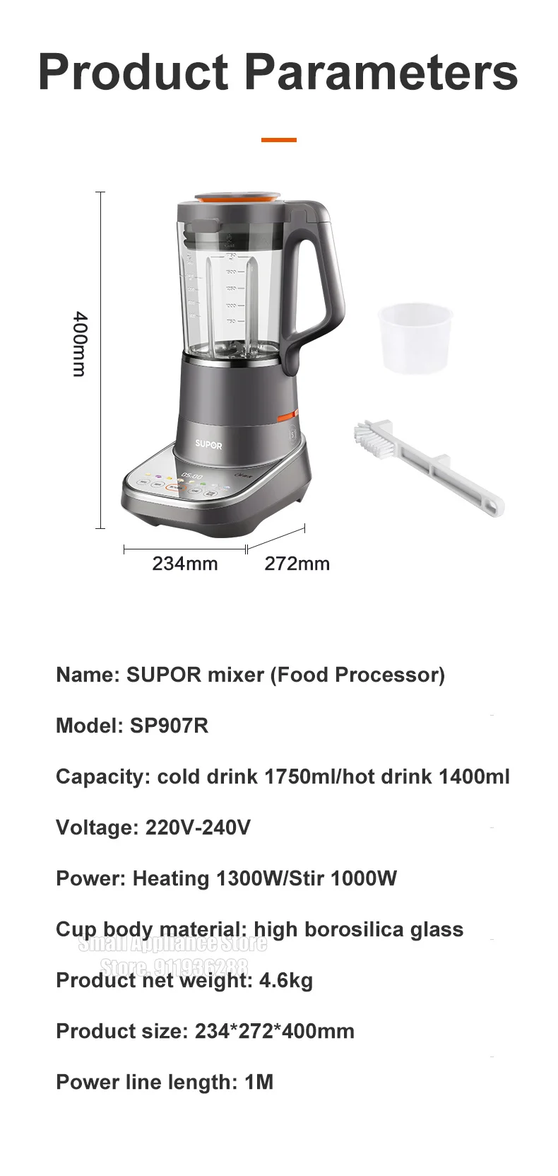 SUPOR Food Mixer Blender 1750ML Soymilk Maker Multifunctional High Quality Food Processor Stainless Steel Home Kitchen Appliance