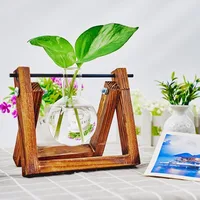 Tabletop Glass Planter Propagation Station Hydroponic Plant Vases In Wooden Rack Terrarium For Plants For Home Decor Room Decora