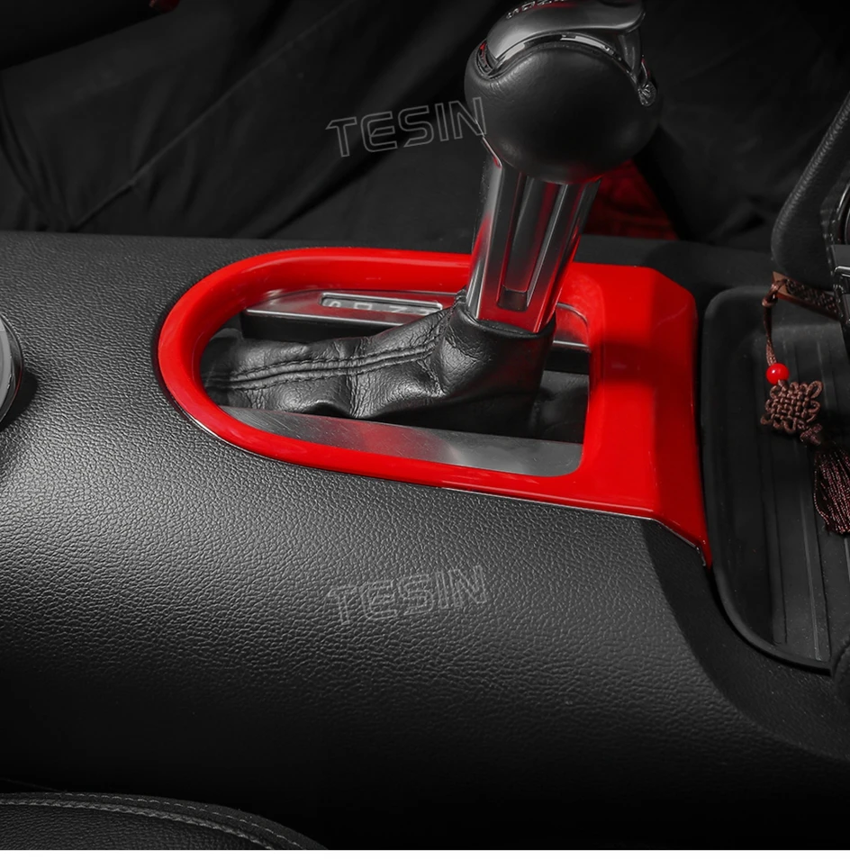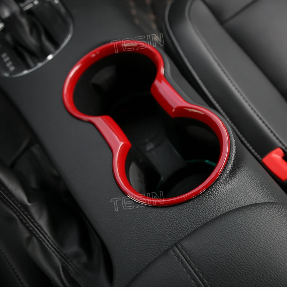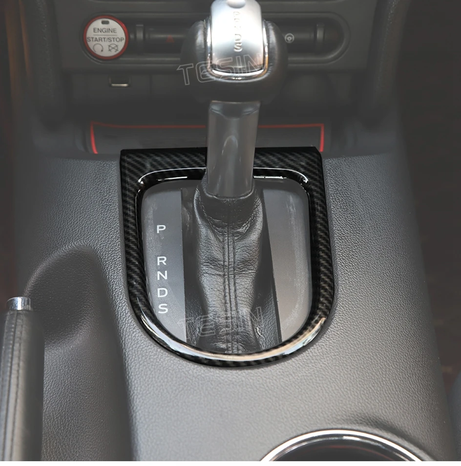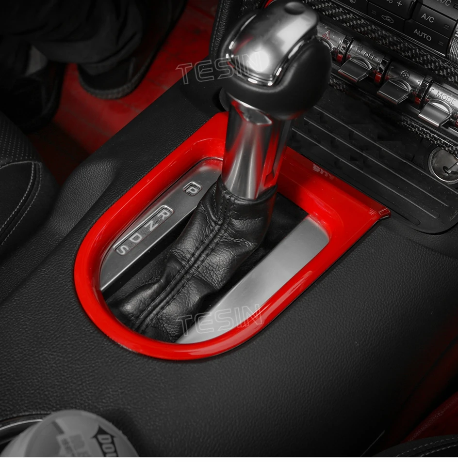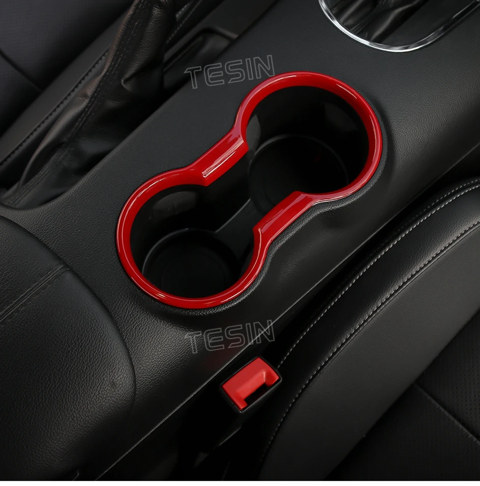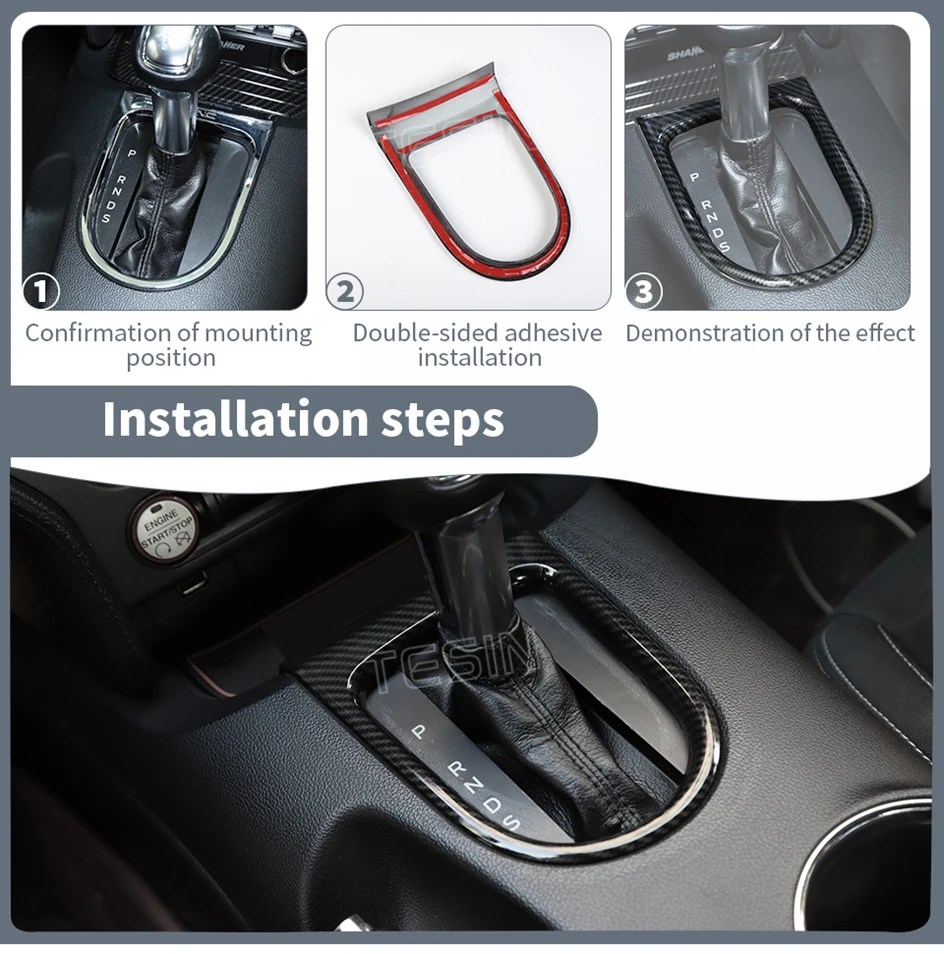 TESIN for Ford Mustang 2015-2023 Carbon Fiber Grain Car Interior Front Water Cup Holder Gear Shift Decoration Cover Trim Sticker