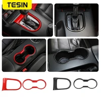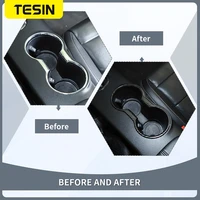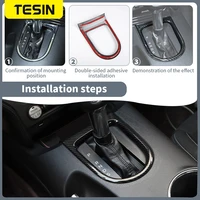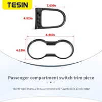 TESIN for Ford Mustang 2015-2023 Carbon Fiber Grain Car Interior Front Water Cup Holder Gear Shift Decoration Cover Trim Sticker
