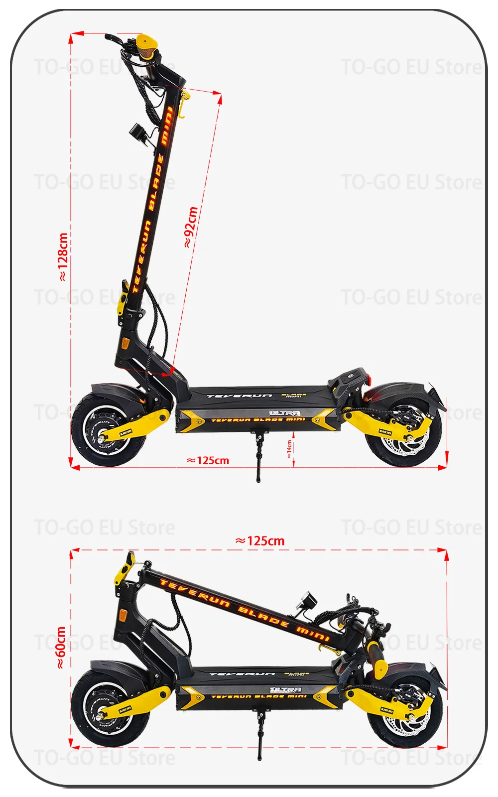 Be the first to review “TEVERUN Blade MINI Ultra V4 60V 27Ah Battery 1000W*2 Motor LCD Display With Key 10inch Tubeless Tire Electric Scooter”
