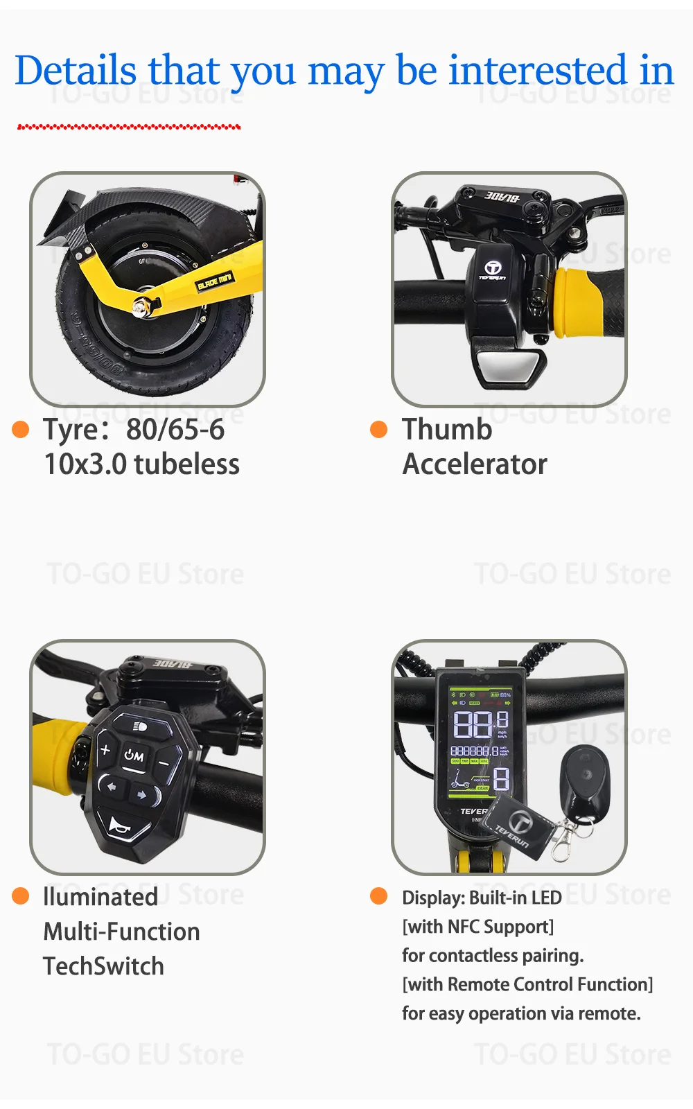 • Tire: 10*3.0 Tubeless
