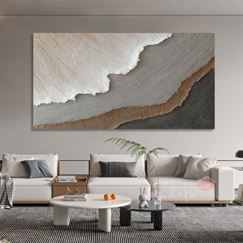Thick Oil Nordic Abstract Wave Scenery Handmade Oil Painting Home Decoration Bedroom Dining Room Living Room Restaurant Mural