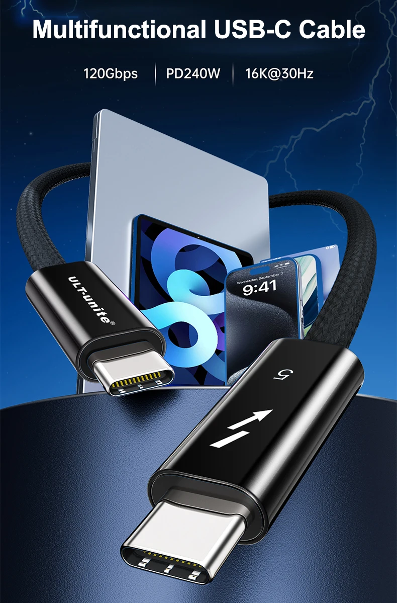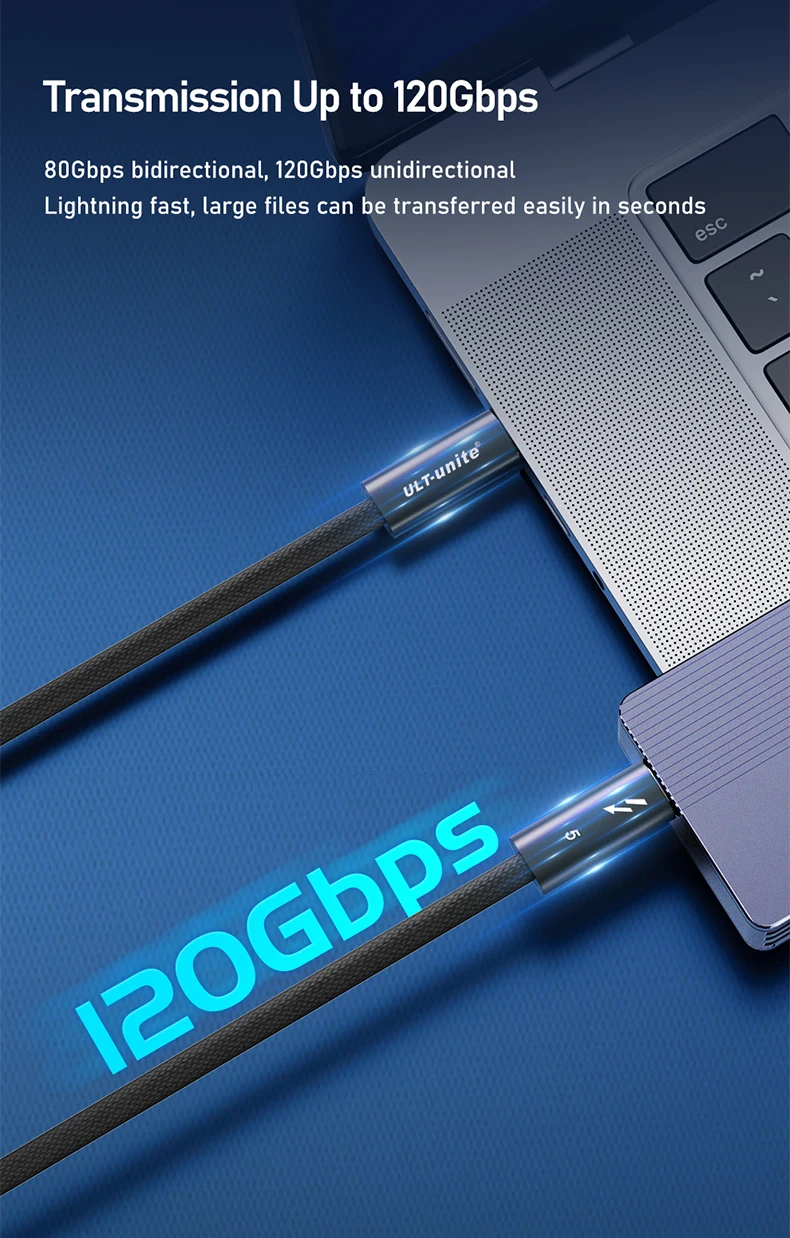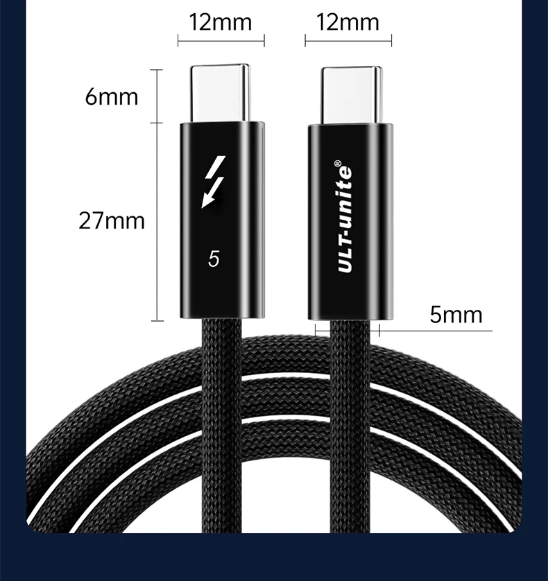 Thunder-bolt 5 Cable 120Gbps Data Sync 240W Fast Charging 16K30Hz 8K@60Hz USB Type C Cable Compatible for MacBook, iPad, Docking, SSD