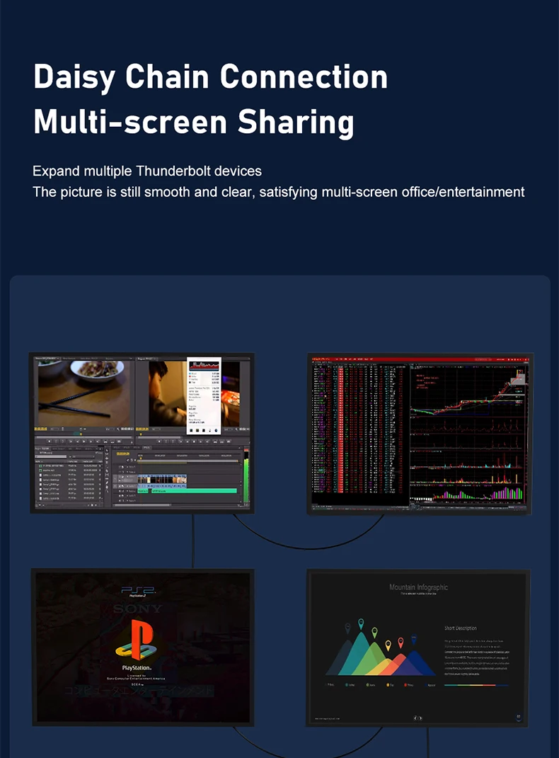 Lightning Quick: work and play faster with up to 80Gb/s of bi-directional data speed and up to 120Gb/s for higher display bandwidth needs.