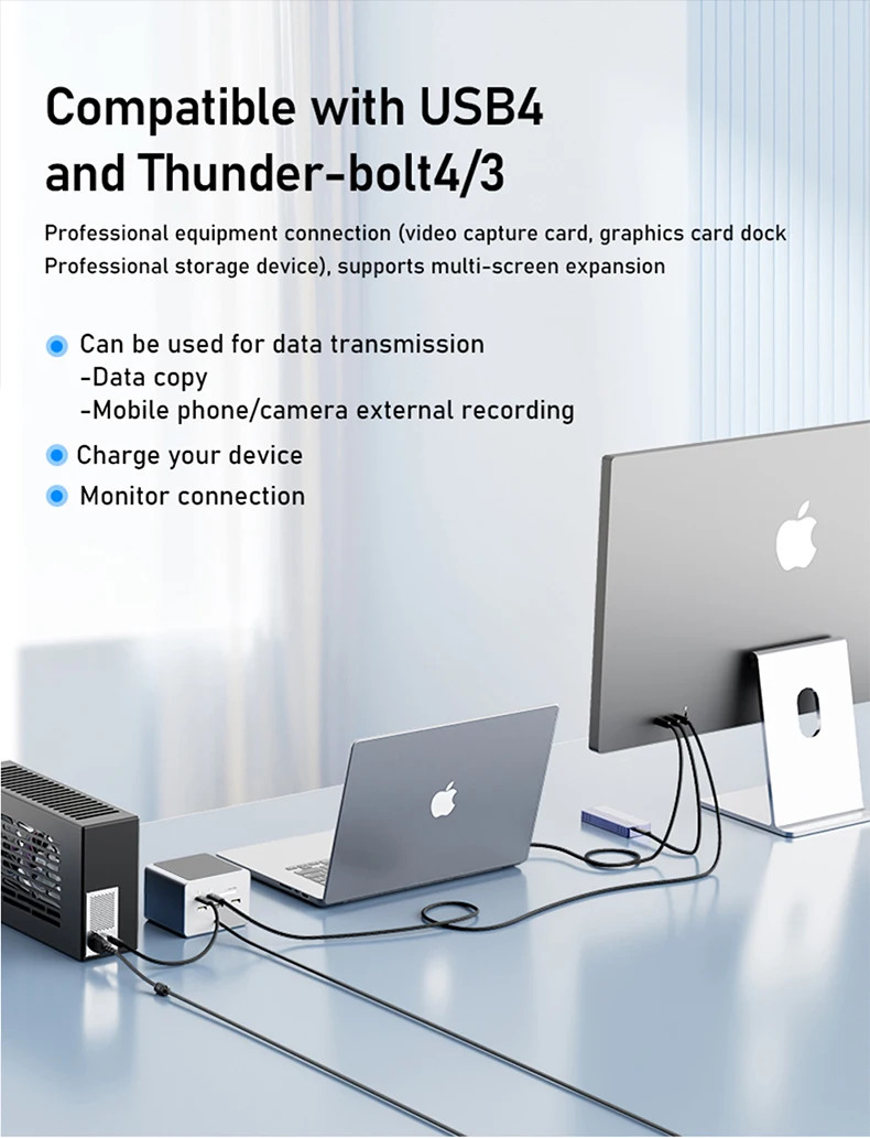 Compatible with Macs, PCs, iPads, Chromebooks, Surface, and other devices with a TB5/4/3 USB4, or USB-C port.