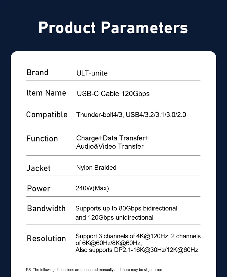 Be the first to review “Thunder-bolt 5 Cable 120Gbps Data Sync 240W Fast Charging 16K30Hz USB4 Type C Cable Compatible for MacBook, iPad, Docking, SSD”