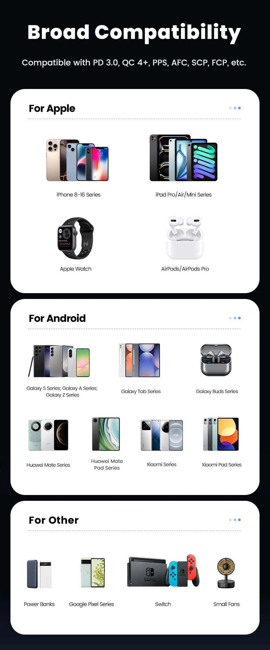 • Applied Fast Charge Protocols: USB PD,Other,BC1.2,Qualcomm Quick Charge