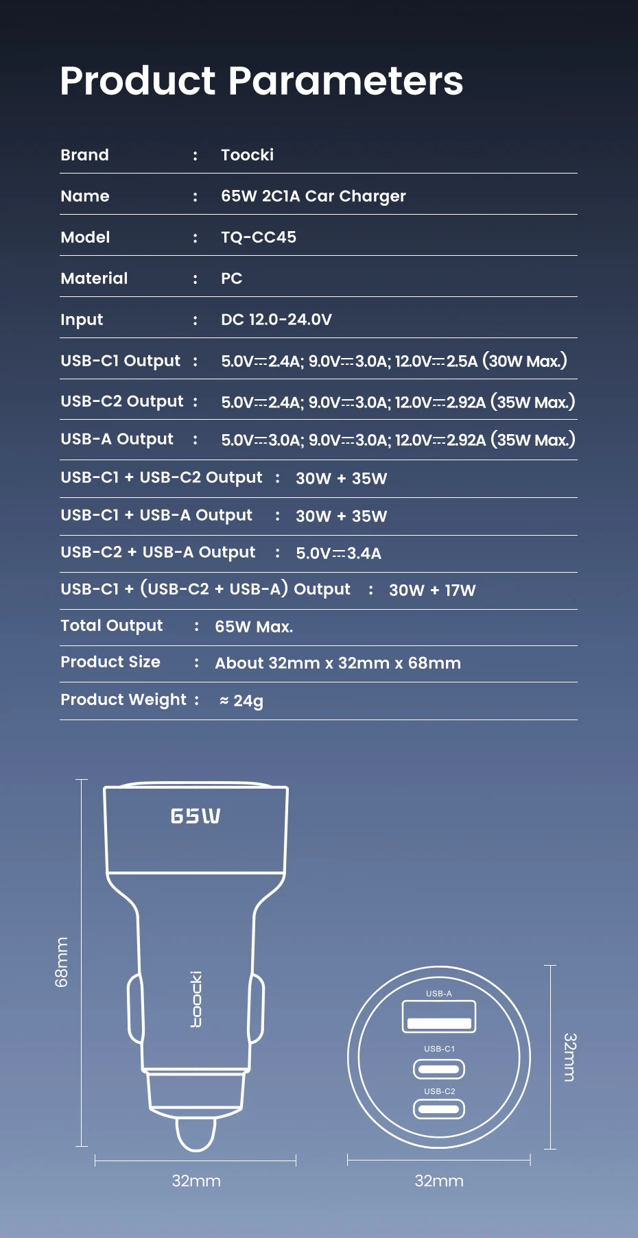 Name: 65W 2C1A Car Charger