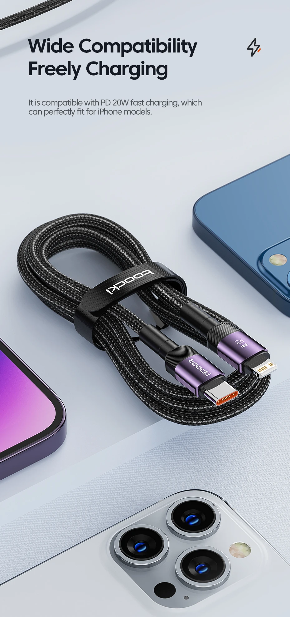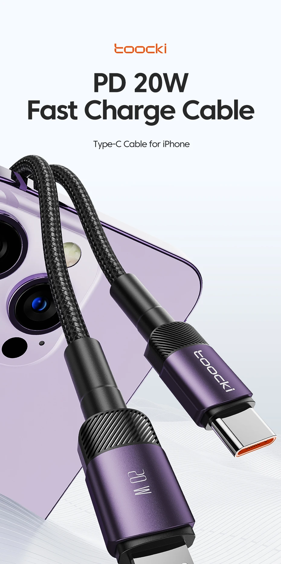 Toocki PD 20W USB C To Lightnin Cable For iPhone 15 14 13 12 11 Pro XS 8 Type C To Lightning Cable Data Wire Fast Charging Cable