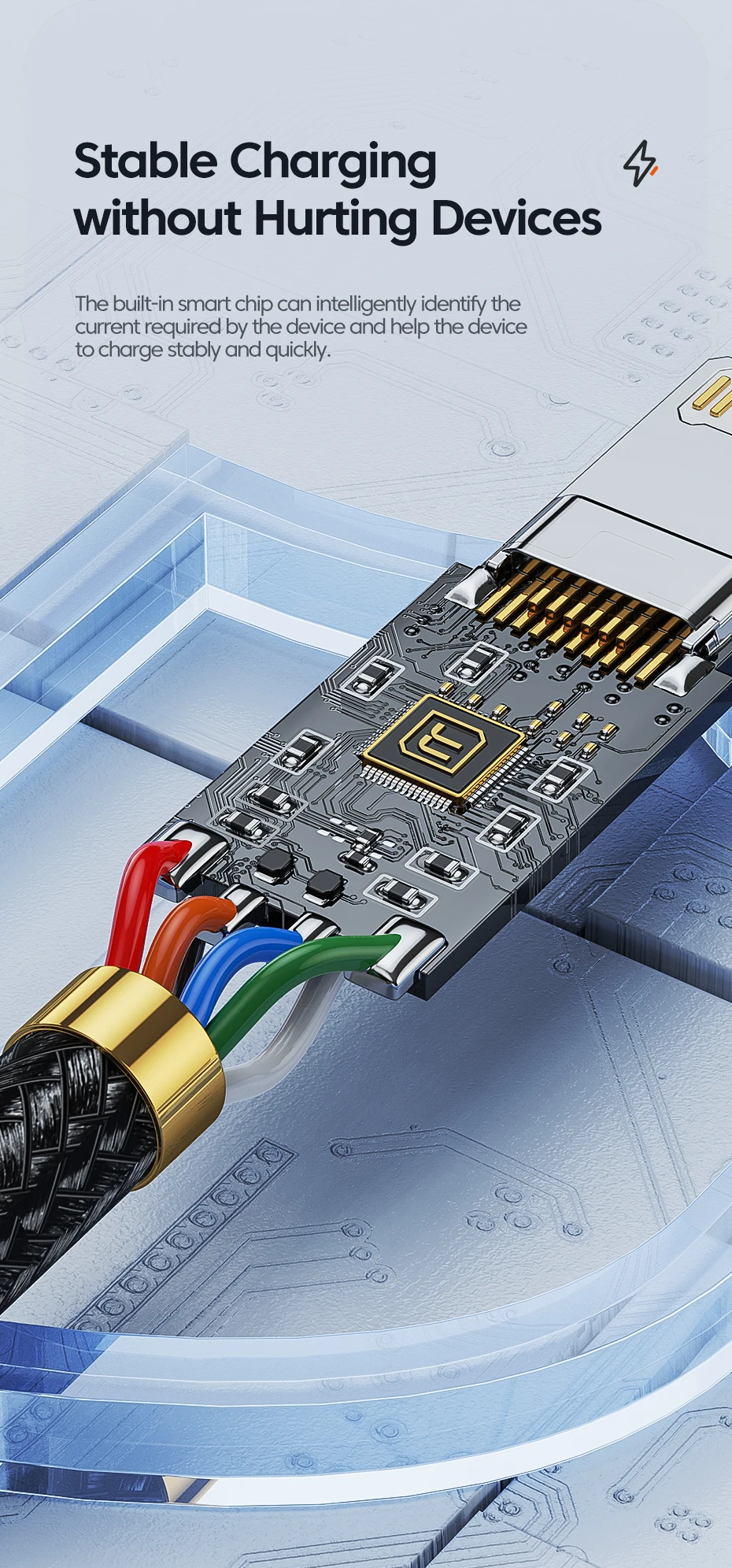 The built-in smart chip can intelligently identify the current required by the device and help the device to charge stably and quickly.