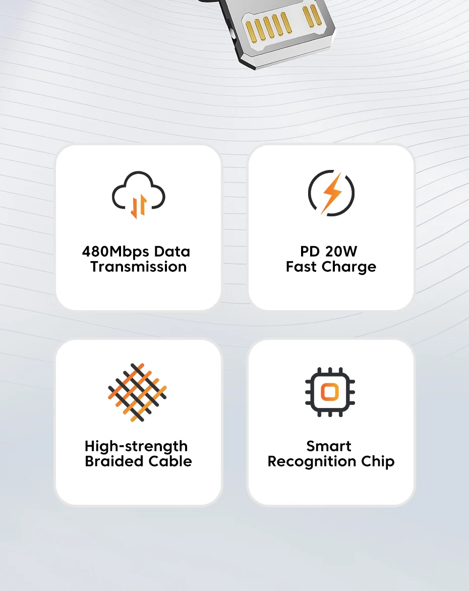 Support PD 18w Fast Charge, 480Mbps Data Transmission, Five-strand Thick Cable Core, Smart Recognition Chip