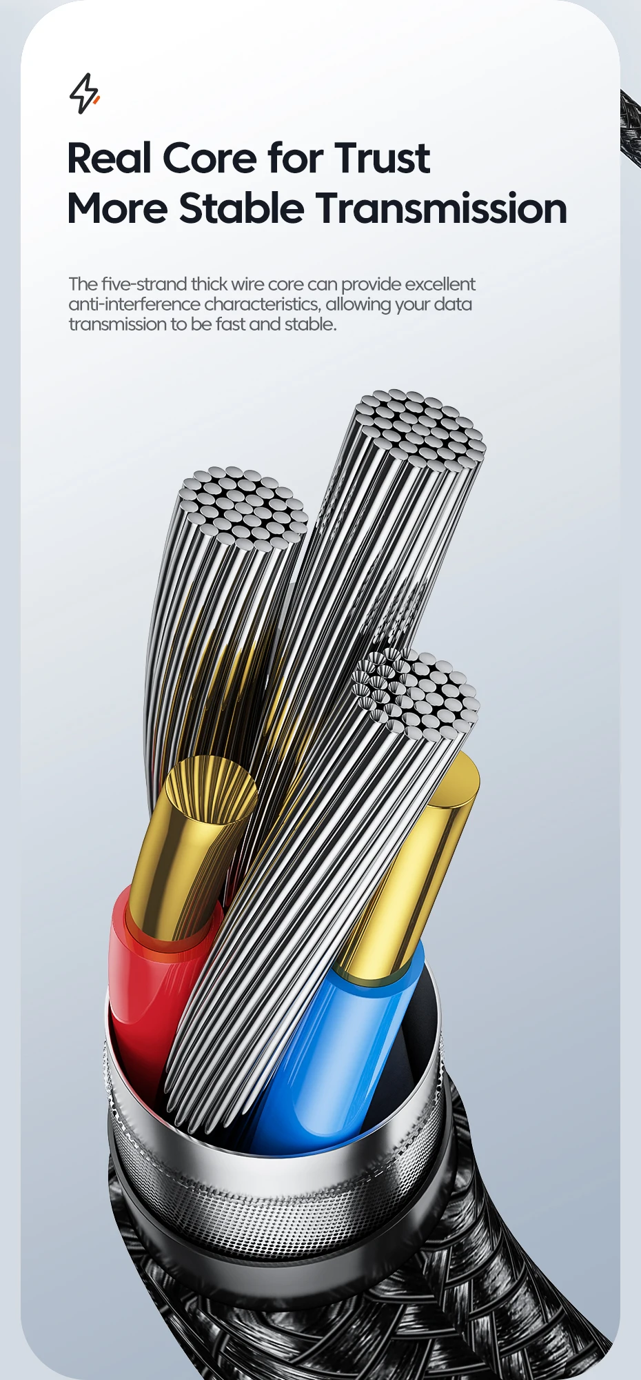 The five-strand thick wire core can provide excellent anti-interference characteristics, allowing your data transmission to be fast and stable.